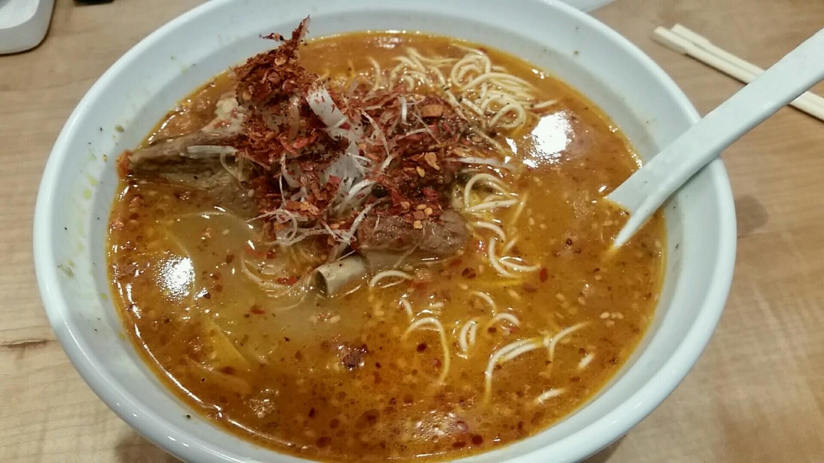 福岡市西区石丸1-12-25 092-836-6855 今日は家の近くにいあるこちらのお店へ。 ランチタイムになると結構満員になっていてうれしい限り。 夜は持ち帰り専門店になるので、昼だけしか店内で食べれない。 意外とハードルは高いね。 さて今回は企画的な料理を。 辛い物好きな人用の料理らしい。 あまり強いわけではないけど・・・。 ドラゴン担々麺880円。 「辛いですけど大丈夫ですか?」 って聞かれる一品。 震えながら大丈夫ですよと答えておきました(笑)。 でもこれ、美味いです! しっかりと鶏や豚かな? 出汁が効いていてそこにゴマの醤が濃厚さを加えている。 そこに唐辛子系の辛さと山椒の辛さが加わっている。 山椒よりも唐辛子系の辛さが強いかな。 もちろん、他の店の担々麺から比べると山椒の辛さはしっかりしているけどね。 具はスペアリブのみ。 とろとろのスペアリブがまた少し辛い気がする。 これは美味かったなぁ。 しかし食べて汗を大きくかく。 これは健康にもいいのかも(笑)。 ちなみに今回はしっかり混ぜました(爆笑)。 次はエビ飯も食べてみたいな。 ご馳走様でした!