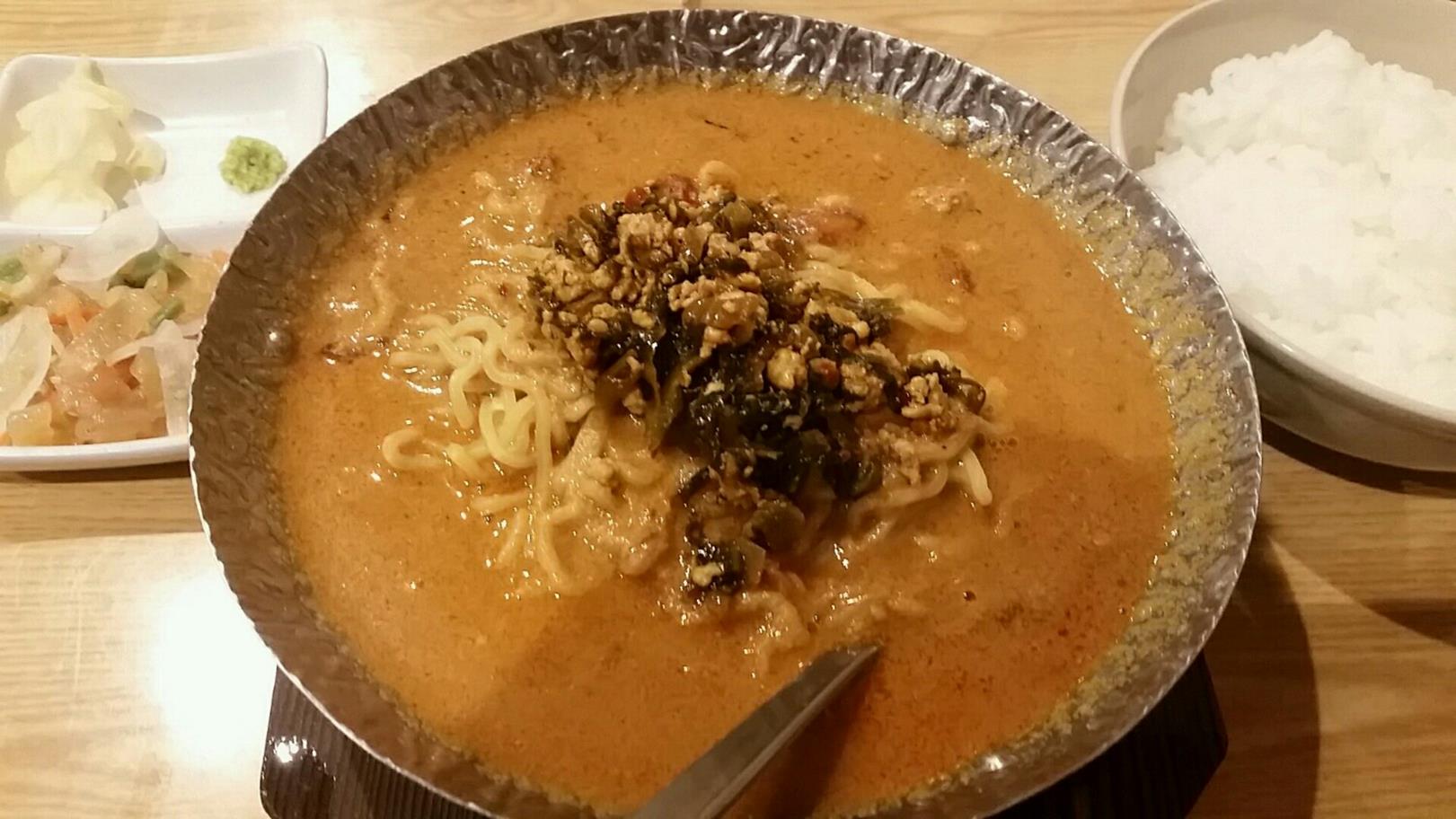福岡市博多区大博町7-13 092-292-0308 今日は久々にこちらのお店へ。 相変わらずわかりにくいところにあるのでそこまでお客さんは少ないけど少しずつ増えていっていると思う。 少しずつでもいいから人気になったらいいなぁ。 さて今回は新しいメニューがあったのでそちらをチョイスしました。 僕はこちらが好きですからねぇ。 ちょうすけ担々麺700円。 僕の知っている担々麺と全く違うものが出てきた。 汁無しタイプと書いてあったけどわりとスープっぽいのが入っている。 ドロドロとしたたれが浸っている。 タレは強いゴマベースでそこに高菜が入っているので酸味が含まれている。 辛みは少し強めかな。 唐辛子系の辛さがメインです。 麺は中華麺でプルプル系。 ここにご飯と漬物小鉢、昆布だしがついてくる。 相変わらず面白いお店ですねぇ。 次は夜に行きたいなぁ。 なかなか行けないけど一度ゆっくり食べてみたい。 ご馳走様でした。