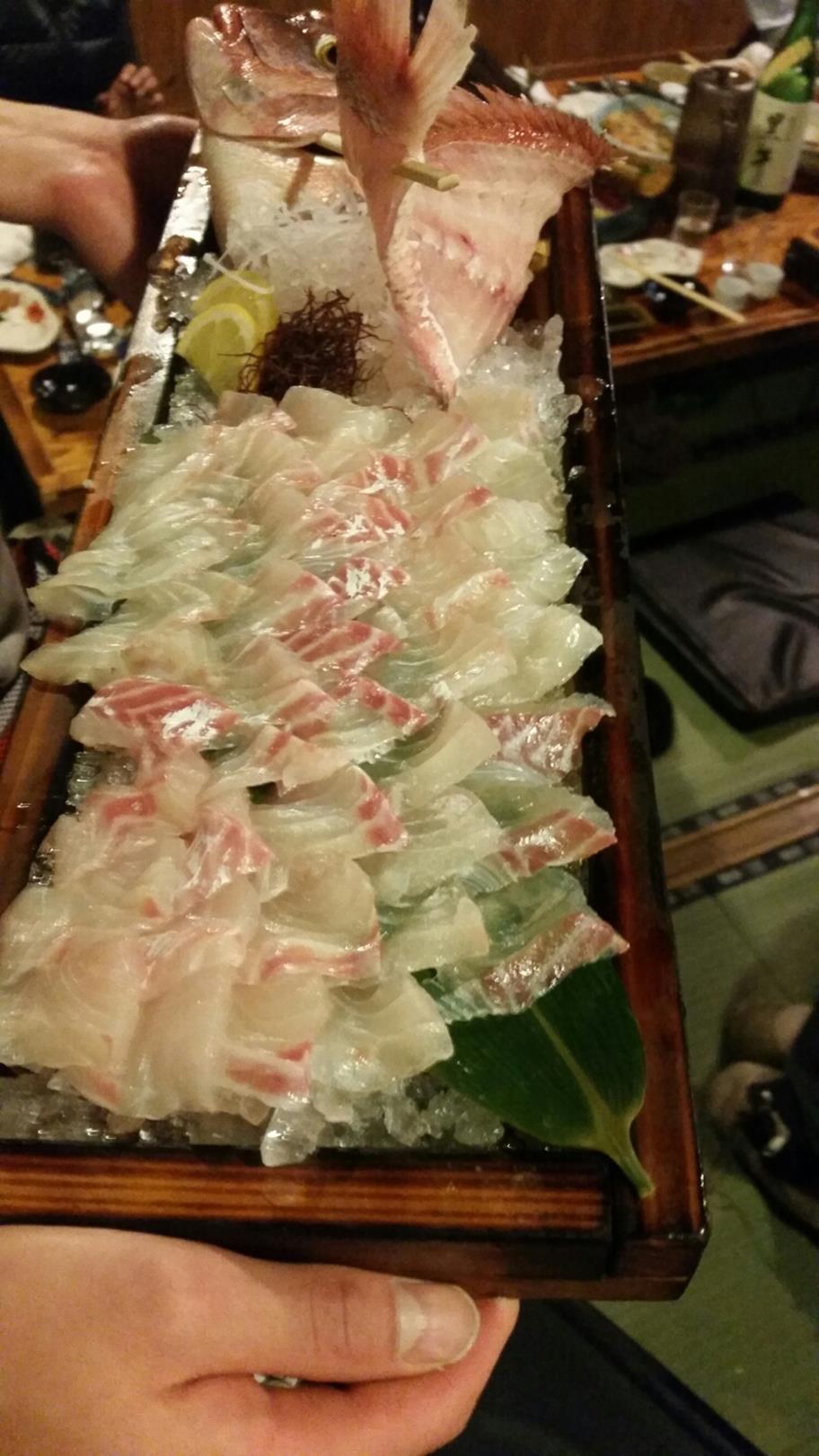 福岡市中央区長浜1-4-15 092-716-9988 まだまだ昨年末のイベントが書けていませんでした。 お酒イベントに参加をずっと参加させてもらいましたがもう12月になるんですね。 しみじみとなってしまいますね。 面白いというか凄いお酒が出てくるのですが、ここではそれに負けないように面白い料理を出してくれます。 そしてそれを酔っぱらって写真を撮り忘れる駄目な僕が見えてきます(苦笑)。 さて今回も美味しい料理をご紹介。 つきだしというかスターター。 今回も少しずつですが素晴らしいですね。 からすみや鮟肝もたまりません。 臭みなどないし、甘みも感じるつまみってお酒に合いますよね。 ってよりこんな高級な食材って申し訳なってきます(笑)。 刺身。 鯵やら鯖やらをきっちり刺身で食える。 臭みもなく脂も割と強く感じるのが嬉しいですね。 少し甘い醤油にもよく合っている。 きれいな魚が嬉しいな。 いつもいただいているサラダ。 ワンタンのふたが面白い。 砕くといい歯ごたえ。 鶏の椀。 餡が柔らかく香りがいい。 鶏のプリッとした歯ごたえもいいですね。 お腹も温かくなるし嬉しいな。 煮つけ。 ちょっと画像がぶれていてわかりにくいですが、甘い煮つけがたまらないですね。 レンコンや豆腐がまたいいですね 魚のうまみを吸い込んでいてこれがいいですねぇ。 これと酒をちびちびいただける嬉しさがよかったです♪ 最後に釣り上げたタイを。 焼きと刺身で。 これも楽しいイベントですよね。 釣ってそれを食べる。 子供がいたら喜ぶだろうなぁ。 ってことで年末のお酒イベント終了。 かなり酔ったので記憶もまちまちですが。 また今年もよろしくお願いいたします。 ご馳走様でした!