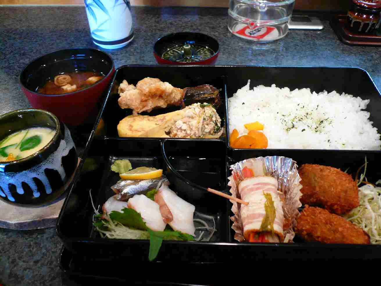 広島市安佐南区西原6-9-10 082-850-3370 今日は、ってより今日も魚ものが食べたくて、こちらのお店へ。ってよりホットペッパ-でクーポンがあったし、一度友達と夜に行って、生きたイカが出てきたこともあって、ちょっと楽しい店の記憶のもと行きました。 ランチ850円。でも50円引き。 見てビックリの多彩さ。ご飯に味噌汁・茶碗蒸し・タコと小いわしの刺身・からあげ・豆腐の白合え・さんまの煮付け・ベーコンの野菜巻き・コロッケ・野菜・・・、他にあったかな? かなり多彩!でもなかなか1品1品が旨いんです。 コロッケは中に野菜が人参やインゲンかな?が入ってて美味しい!多分お好み焼きソースとマヨネーズの混ぜたタレをつけて食べるのかな?手作りっぽくてなかなか♪ タコもいわしも普通に旨いし、唐揚も熱々! それより何より、弁当方式だったけど、開けた時に柚子の香りがしてすっきり!多分、ご飯にかかってた緑のやつだろうなぁ。いい感じ。 茶碗蒸しが濃くてびっくりしたり、作ってる人が一人に女性のサポート役が一人しかいないから時間がちょっとかかったのは辛いけどそんなのを吹っ飛ばすいいお店でした。 あっ、セルフでコーヒーも付きます。 なかなかいいじゃな~い♪ ご馳走様でした!!