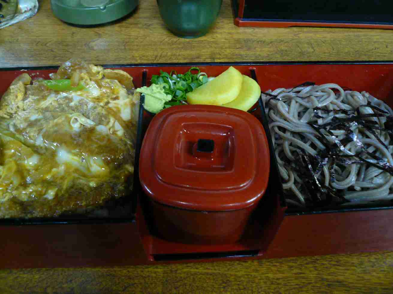 広島市中区十日市2-9-4 082-293-8987 今日はさらっと蕎麦でも、なんて思って行きました。 こんなところに蕎麦屋さんがあるとは・・・。 入ると古い感じの蕎麦屋さんでした。 カツ丼セット850。 蕎麦屋さんでカツ丼かよ!?って感じかな(笑)。 蕎麦は黒い太い蕎麦でした。 そういえば『出雲屋』さんによく似た蕎麦でした。 つるつる食べるよりがつがつかぶりつく感じかな? 食いつく蕎麦って感じでした。 カツ丼は蕎麦の出しかなぁ? 色は濃いけど醤油辛くて強烈!って感じでは無かったです。 あまり甘さも無くて汁気も無いタイプ。 わしわし食べたいのだけどこの容器は何敵。 これだと丼ではないので口に持っていけずにネコ喰いになって しまうのだよなぁ(苦笑)。 見た目はわからないけどボリュームも強烈。 夜になっても全く腹減らないです♪ ご馳走様でした。