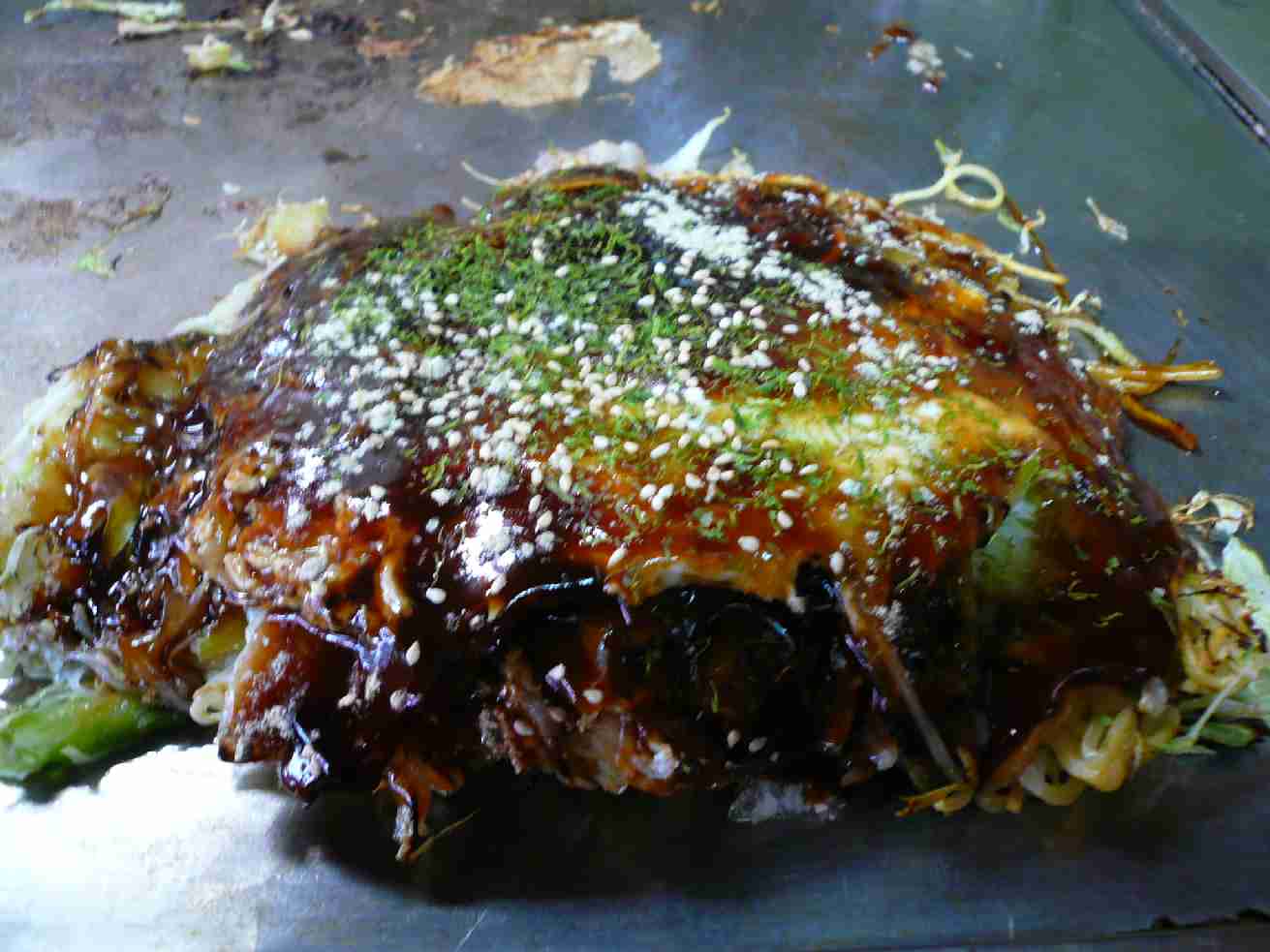 広島市安佐南区川内3丁目5-35 082-879-7309 入るともう既に10枚近く焼いてあるし、切ってあるキャベツの千切り(物凄く細い)が大量にあって持ち帰りが中心のお店かな? おばちゃんがせっせと焼いておられた。 豚玉ソバ450円。 豚玉のみだと420円。安っ! 焼くところを見てると薄すぎるくらい薄い生地に醤油で味付けした ソバを乗せて焼いていた。皮がひび割れしていたくらい薄いので かなりびっくり! そしてソバを醤油で炒めてたのもちょっとびっくり。 香ばしい匂いがほんわりしてきていい感じですなぁ♪ 実際に食べてみると、ソースの濃さと醤油の塩辛さでかなり 濃厚さを感じてきました。 おやつってより夜ご飯みたいですね。 キャベツに味がちょっと抜けちゃってる感じだったけど 物凄い量のキャベツが入ってたからボリューム満点でした。 下町お好み焼きですなぁ♪ ご馳走様でした。