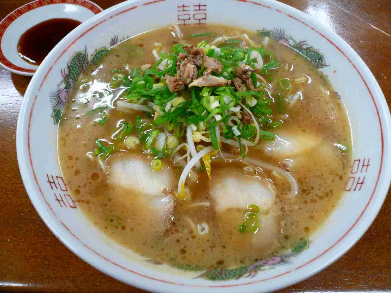 広島県広島市中区白島北町12-1 082-221-8656 『小出家』さんで知り合った人に ラーメンが好きだと言うともう一軒行くぞ! って言われて連れまわされる(笑)。 30歳過ぎて4軒目はなかなかきついのですが・・・。 それも閉店時間に行って無理やり出してもらってました。 お店の人すみませんでした。 ラーメン。 こちらもズシン!と来るラーメンではないです。 豚骨でこってりしてそうだけど、意外とするする入ります。 でも食べ終わりにふぅぅぅ、って来るから 脂をかなり含んでるんかな? ラーメンの具はシンプルであっさり。 ちょっとチープな感じになるが紅生姜を入れたくなるのは 自分だけ? 最近の流行の感じなラーメンなんかな? またちゃんとした状態の時に行きたいなぁ。 ご馳走様でした。