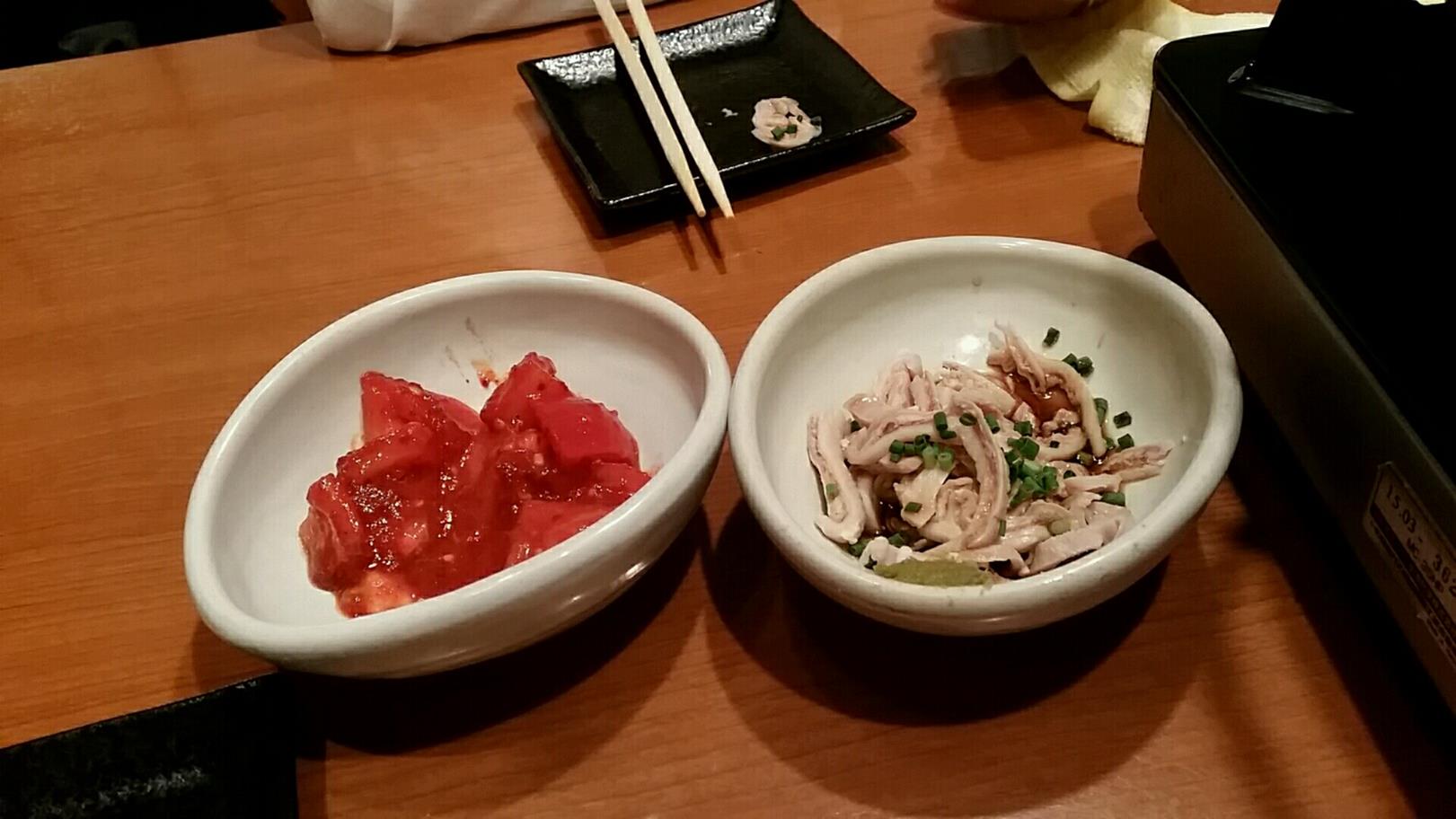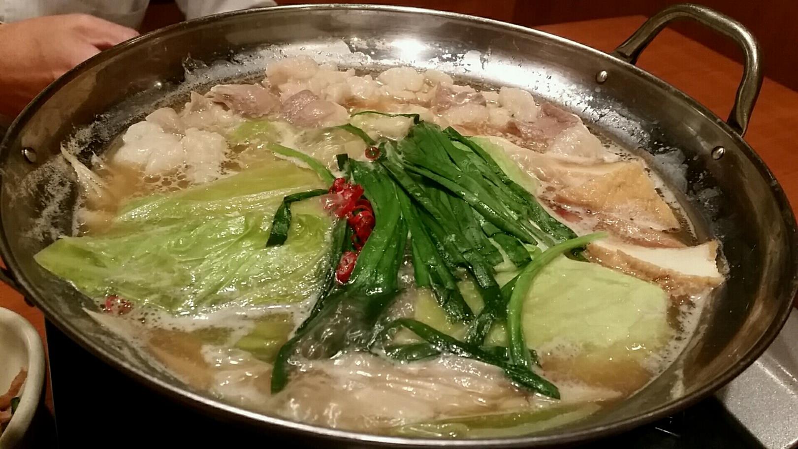 福岡市西区福重5-4-7 092-892-3381 今日は帰り道にこちらに立ち寄って。 上司とゆったり晩酌となりました。 こちらは全席個室ということで。 のんびりと食べれる雰囲気がいいですね。 場所柄家族連れも多く、なかなかのにぎわい。 さてまずはつまみをいただきながら。 トマトキムチ、生センマイ刺し。 トマトキムチは甘辛いキムチたれがかかったトマト。 酸味の少ないトマトだったので甘さが際立ったな。 生センマイって最近本当に臭みのないものが多いよね。 シャキシャキした歯ごたえと軽い酸味のポン酢がポイントかな。 メインは焼肉や焼きホルモンではなく。 もつ鍋にしました。 味付けは味噌味で。 沢山アクが出てくるので少しずつ取りながら完成させていきます。 味わいはかなりホルモンの脂の部分は取られていないタイプ。 かなりプルプルしたホルモンとなっておりました。 甘みが強い感があるもつ鍋はかなりしっかりした味わい。 これはなかなか個性的というか若い人向きな一品ですね。 これでかなり酒が呑めますね。 卵かけごはん290円。 〆は卵かけごはん。 はい。 卵かけごはんでした(笑)。 でも面白かったです。 次は焼き物かな。 ご馳走様でした。