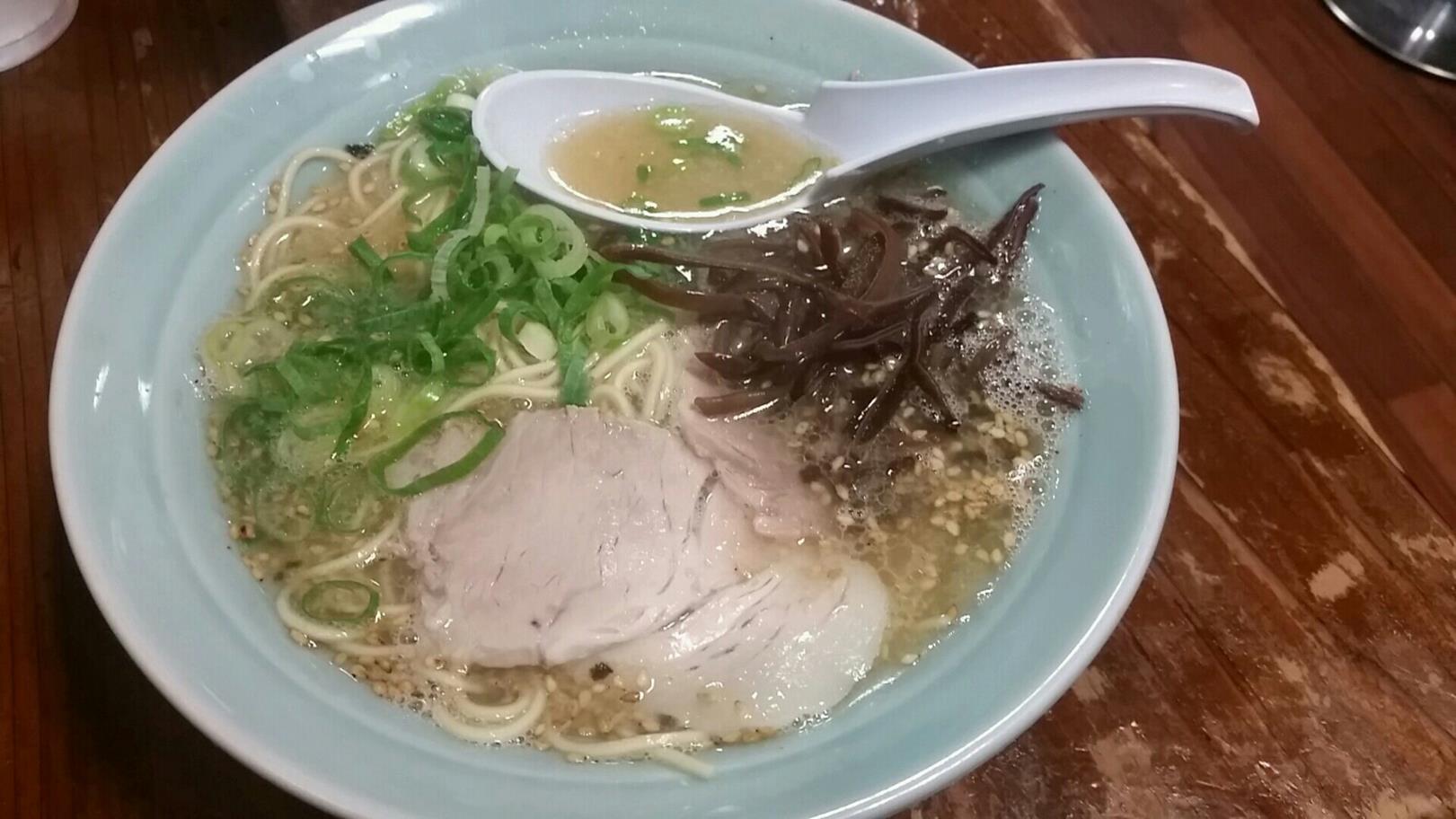 福岡市博多区上川端町3-1 092-281-4018 この日は長く福岡におられた方の送別会。 寂しいですが、また新しいエリアで頑張ってください。 その方たちと呑みに行って〆に行ったお店がこちら。 その方はいつも〆に行っているらしい。 入店が26時くらいなのですがお客さんが多いですね。 さすがに時間も遅いのでシンプルにこちらをチョイス。 ラーメン650円。 とんこつラーメンですが、結構脂が浮いている。 酔っている時でも少し塩分が強いかな? なんて思えるくらい塩分が効いているラーメン。 少し豚骨臭さも残しているラーメンで、豚骨ラーメンを食べている気持ちになりますね。 少し太めの麺でむちっとした食感も面白いね。 途中で真っ赤な辛子高菜を加えると刺激が増していいですね。 〆に加えると面白いです。 美味しいラーメンでした。 次は餃子も食べてみたいな。 ご馳走様でした。