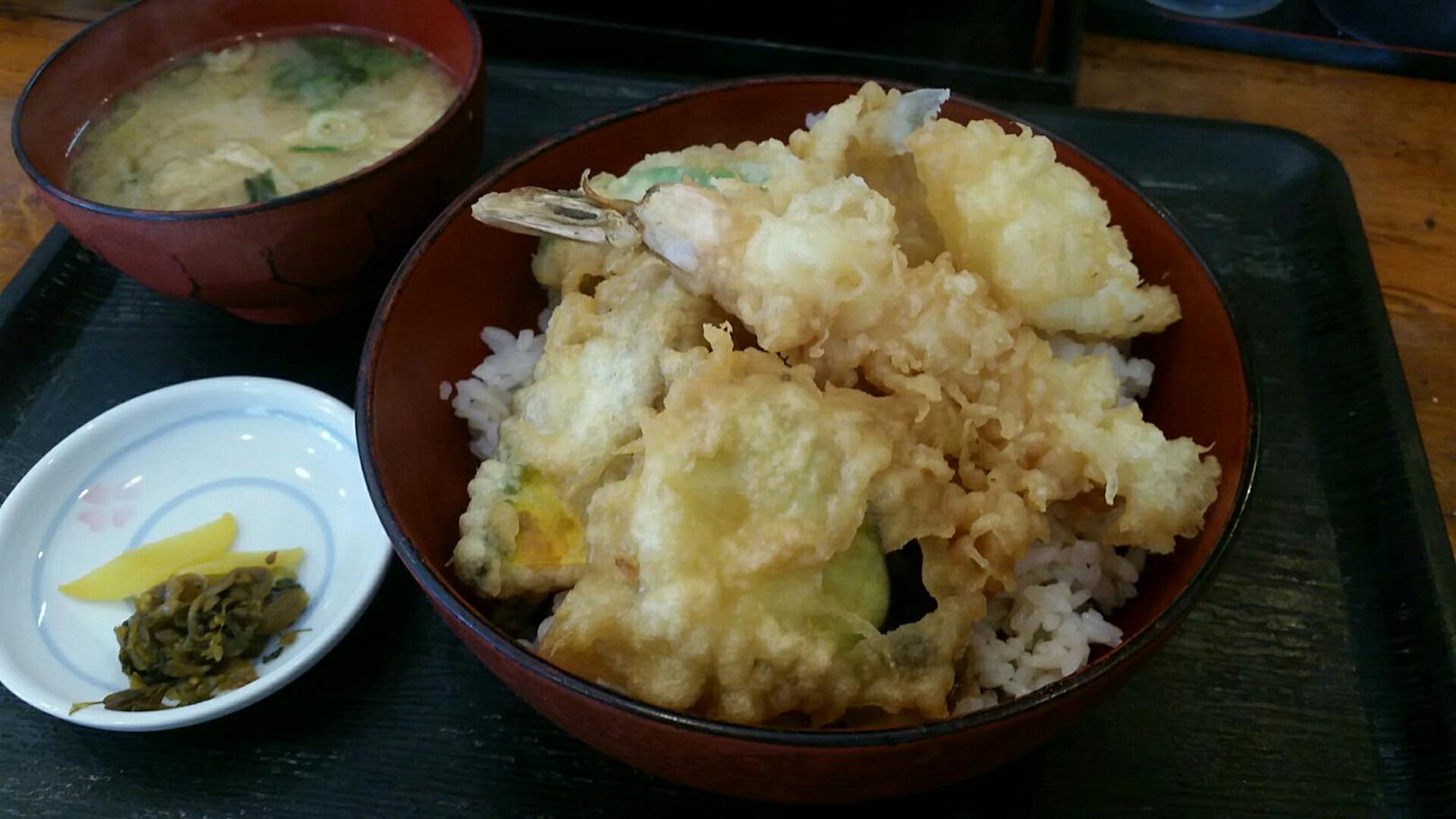 福岡市博多区大博町13-4 092-291-9322 今日は16時にランチを食べるという災難。 こんな時間に開いているのはここということで訪問。 入ってメニューを見ると気のせいだろうか。 少し料理の種類が減った気がする。 時間帯でメニューが変わったのだろうか? さてカレーでもいいかと思ったのですが、今回は珍しいメニューをチョイス。 天丼700円。 こちらのメニューはすべてに味噌汁がつくのが嬉しい。 天丼はとても衣が分厚い。 フリッターのような衣に天つゆがかかっている。 さらっとした天つゆが面白いですね。 しかし油をよく吸っていてちょっと重いなぁ。 やっぱりこちらは唐揚げとかの方が好きだなぁ。 ってことで次は唐揚げ系とかを頼もうかな。 ご馳走様でした。