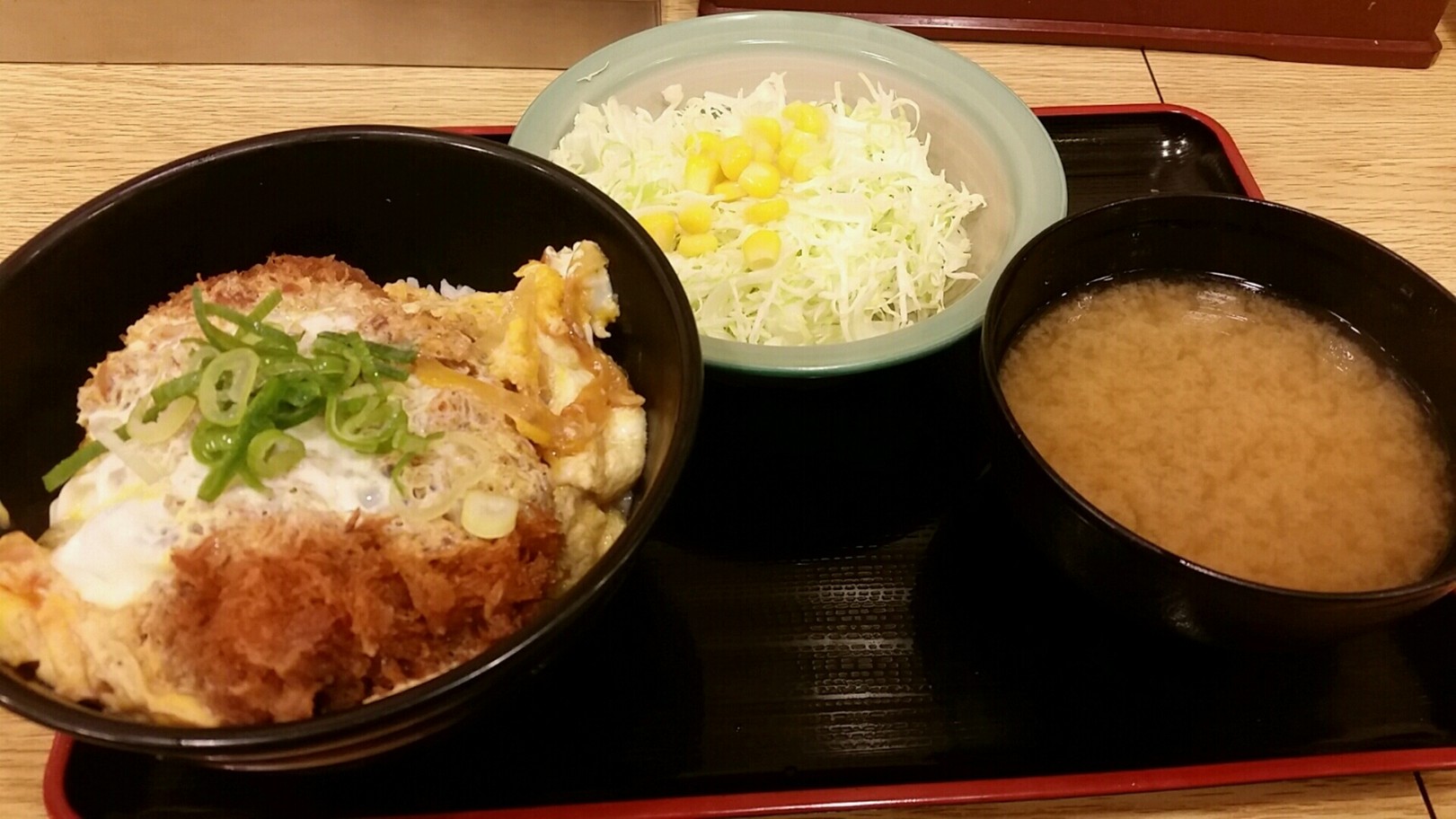 福岡市中央区天神3-16-22 092-738-2701 今日は仕事帰りにひょっこり立ち寄ったお店へ。 こちらは元々『松屋』さんでしたか、業態変更していた。 こちらは豚カツのお店として、展開しているようだ。 時々、企画的なメニューもあっていつか寄りたいな。 なんとなく、そう思っていたのですが今回もまた気になるメニューがあって。 入ってみました。 夜遅くなのにお客さんが多いですね。 さて、今回はこちらを。 チキンカツ丼500円。 この値段で丼とサラダと味噌汁が付いている。 写真ではトロトロの卵でとじられていたのだけど。 実際はわりと硬めになっていた。 チキンカツは柔らかく、衣は汁気がある部分はしっとりと。 汁気が無い部分はガリガリと。 なんだかジャンクで旨い。 汁気は少し多いけど気にする程でもない。 サラダは、とんかつソースで。 これも豚カツ屋の醍醐味(笑)。 また企画があって、面白そうなら食べてみたいな。 値段も安いしありがたいもんね。 ご馳走様でした!