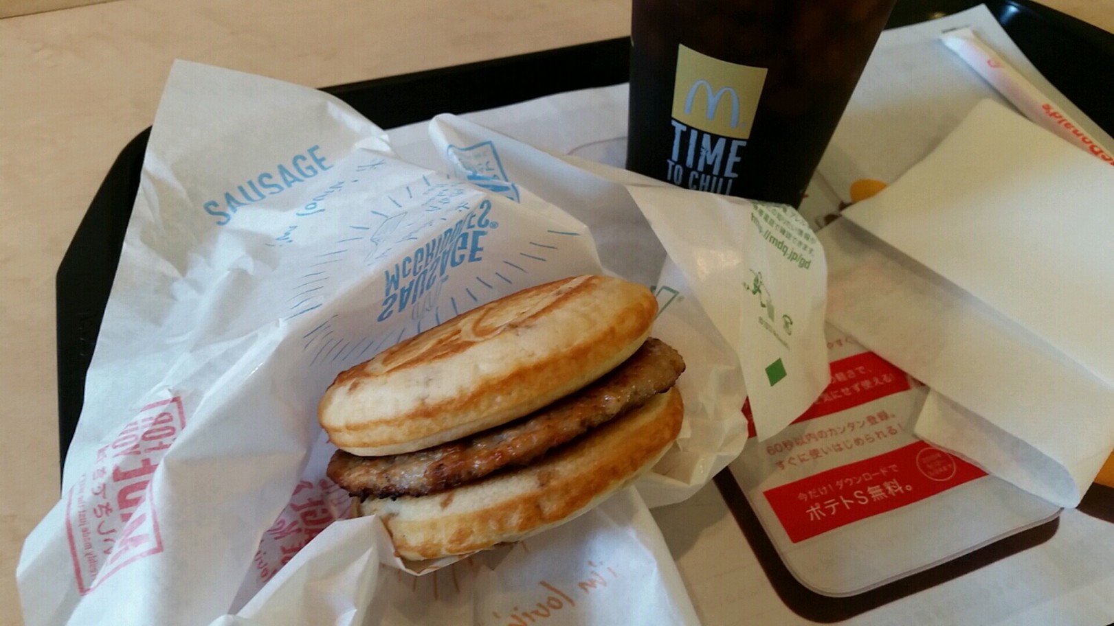 福岡市早良区西新4-7-1 092-832-1250 今日は久々に朝マックを。 最近飛行機にも乗っていないので、クーポンは無いはずなのですが。 Twitterで何故かクーポンが当たってしまったので。 早速立ち寄りました。 こんなんですよ、お兄さん! ソーセージマフィン無料+アイスコーヒー100円。 無料に文句はありません(笑)。 アイスコーヒーは、結構好きで。 軽い苦味が良いですよね♪ あぁ、ありがたや。 ご馳走様でした。