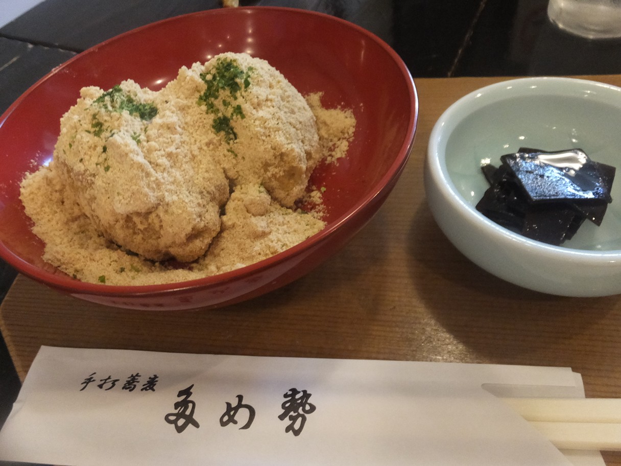 福岡市早良区室見1-5-9 0120-35-1353 今日は、以前から気になっていた蕎麦屋さんへ。 いつか行きたいなぁ、なんて思いながら何故かタイミングが合わずに行けなかったお店。 いつも土日に覗くと行列ができている。 話によると元々は中央区にあった有名店で、数年前にこちらに移転したらしい。 そう言った蕎麦屋さんなら特に行ってみたいと思いランチタイムに行ってみました。 入るとお客さんがやはり一杯。 そしてどんどん行列ができていく。 決して安い値段の蕎麦屋さんではないのにこの行列は凄いな。 期待して、まずはこちらを。 日替わり丼セット1,500円。 この日は長浜漁港で取れた魚で作った海鮮天丼と蕎麦のセットと言う事。 ネタには穴子とキスがメインと言うことで。 こちらは相方が頼んだので少しだけ頂いたけど、タレが甘くなくしっかりとした天丼。 天麩羅はややしっとり系で天丼にはこういった感じなのも好き。 量もたっぷりで嬉しいね。 蕎麦は細めかな。 ぶっかけスタイルだけど、あまり汁が濃くなくてさらさらと食べれる。 綺麗な蕎麦で美味しかったなぁ。 曲渕うどん950円。 こちらではうどんも作っている。 曲渕とはこちらの支店がある場所らしく、そちらでうっているうどんらしい。 綺麗でつやつやしたうどんは滑らかな腰でムニッとしていてこれも美味いね。 蕎麦屋のうどんとは思えない綺麗系のうどんで驚いた。 汁は少し甘みもある濃い汁で蕎麦とはまた違うのか。 それともぶっかけとの違いなんだろうか。 ちなみに蕎麦湯も出てきましたけど、蕎麦湯はさらりとしたタイプ。 美味しいですねぇ。 蕎麦あべかわ500円。 甘いものも食べたくなって。 柔らかく、もちとは違う蕎麦がきで食べるあべかわは美味いですね。 甘いきなこと熱いお茶で食べる事が出来ました。 素晴らしい〆メニュー。 人気なのも納得でした。 ちなみに酒と蕎麦もありみたいですね。 是非行ってみたいな(笑)。 ご馳走様でした!