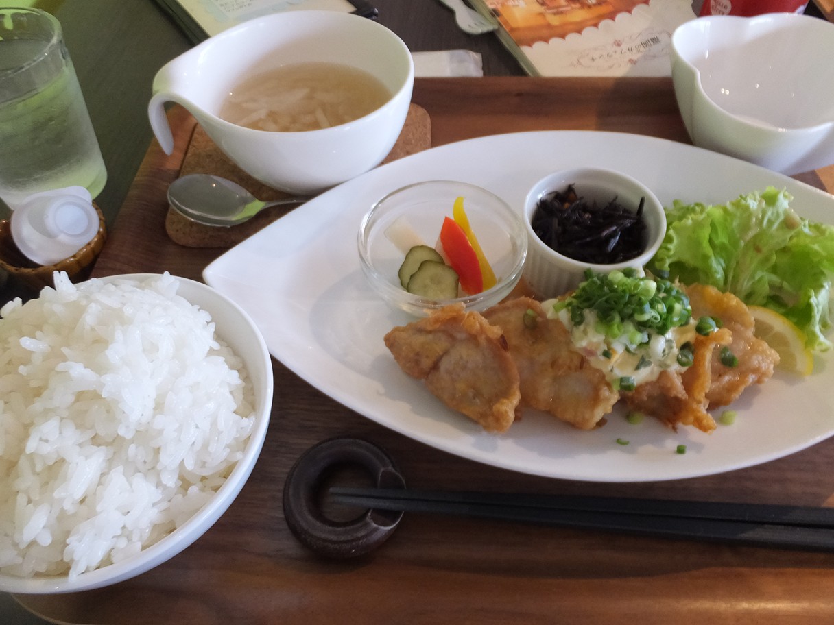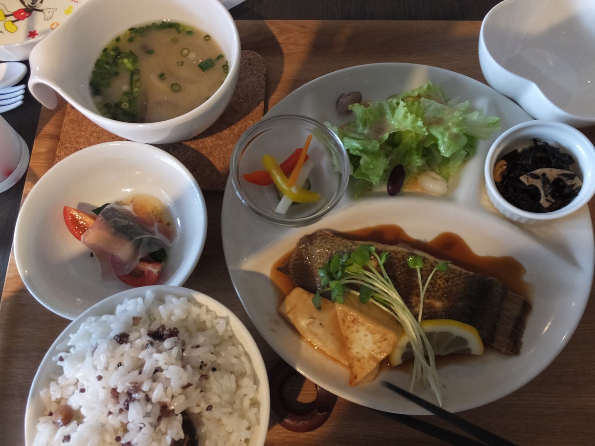 福岡市早良区次郎丸2-10-2 092-873-4044 今日は家族でランチと言うことでこちらのお店へ。 こちらはキッズルームがあると言うことで、家族連れに人気なお店らしい。 入ると確かに小さめだけどキッズルームがあり。 子供たちは楽しそうにそこで遊んでいた。 お店は女性スタッフだけのお店なのかな? カフェ飯のような定食屋のような感じのメニューで安心できそうな感じがする。 さてまずは・・・。 サラダバー 色んな野菜が置いてあり、普通に生野菜サラダとして食べるものや。 ジャガイモやニンジンのように火を通して(揚げ焼きのような感じだった)ものや。 酸味の効いた漬物のようなものが揃っていた。 写真には無かったけど、トマトやジャガイモが大変甘くて旨い。 サラダ自身も旨くてモリモリ食べてしまった。 こういったものを食べれるのは嬉しいな。 日替わりランチ980円。 今日はポーク南蛮。 チキン南蛮の豚バージョンかな? そこにピクルスやヒジキ、ご飯に味噌汁のようなスープが付いてくる。 ポーク南蛮はしっとりとした豚肉に酸味の効いたタレ。 そしてたっぷりのマヨネーズでなかなか美味い。 脂の強い部分を使って作るチキン南蛮より僕はこちらの方が好きだな。 ご飯にもよく合った。 それより気にいったのはスープ。 かなり生姜が効いていて、攻めてるなぁ。 って感じのスープだった。 これをスタートにご飯を食べれるのが嬉しいな。 美食ランチ1,300円。 メインはカレイの煮つけだった。 ご飯は穀米だし健康志向ですね。 カレイは煮汁が強すぎずなかなかさらりと食べれました。 柔らかいカレイの身はいいですね。 デザート200円。 日替わりは別料金でデザートを。 残念ながら僕は食べれませんでした(涙)。 でもいいお店ですね。 家族で行けて、楽しい時間を過ごせるのがありがたいです。 次も家族で行きたいな。 ご馳走様でした!