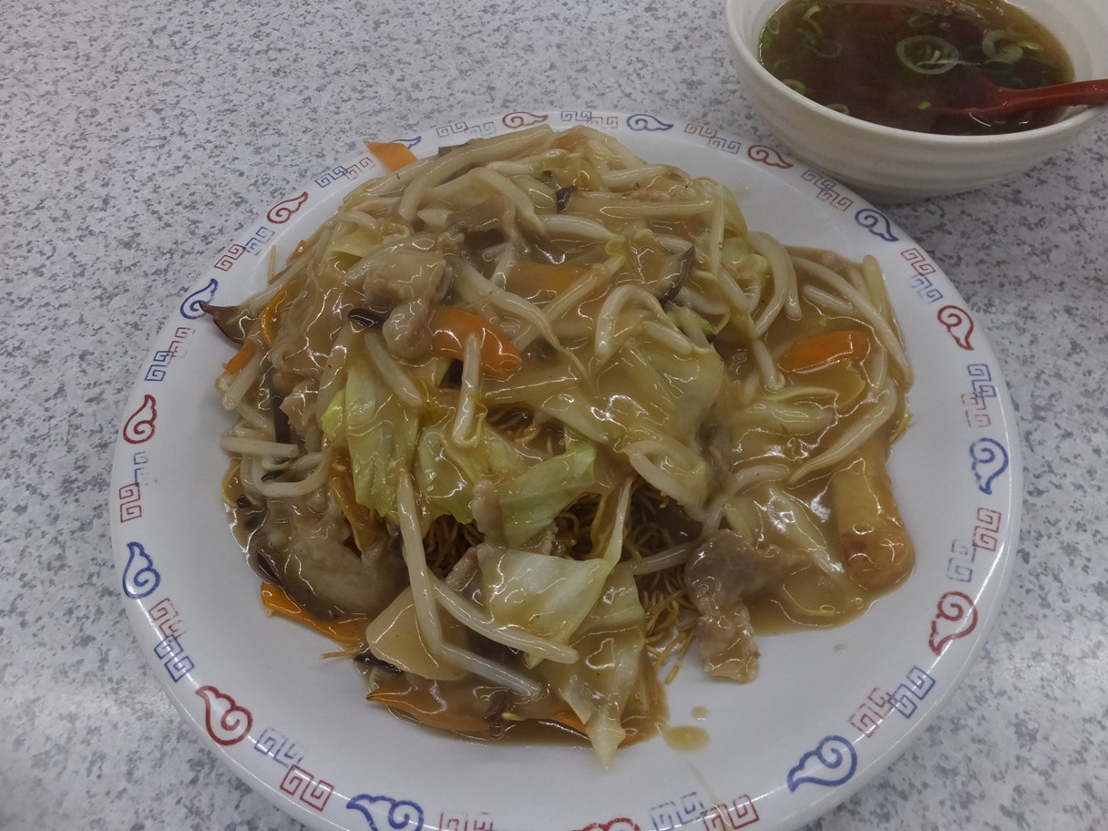 福岡市西区福重5-19-6 092-883-8875 今日も残業。 そんなときに強い味方のお店へ。 この辺りで深夜までやってるお店って少ないですもんね。 ファミレスもあるけど、こちらのお店の方が繁盛してると思う。 そしていつも面白いメニューを見つけてしむう(笑)。 さて、今回はこちらをチョイスしました。 パリパリ焼きそば600円。 僕の予想は想夫恋さんの様な焼きそばだったのだけど。 皿うどんでしたね(苦笑)。 パリパリのそばに熱々の餡がたっぷりかかっている。 熱々の餡がジャンクでたまらない。 スープがついてくるのもありがたい。 このスープは…。 つけ麺の汁とほぼ同じだ(笑)! また今回も面白かったです。 次は何を見つけられるかな? ご馳走様でした。