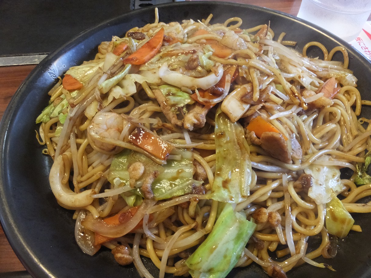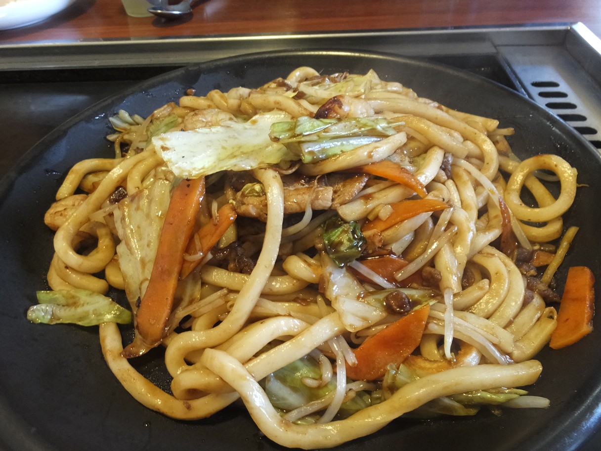 筑紫野市原田836-4 092-919-0755 今日は、子供たちと遊びにいった時に立ち寄ったお店。 周りは、回転寿司やラーメン、カレーなんてあったのですが。 子供の要望が焼きそばだったので、こちらを利用させていただきました。 こちらは小上がりの様な席もあり使いやすいですね。 子連れの客も多いのも納得です。 席には鉄板がありますが、幼い子供がいるので使わずにこちらをチョイスしました。 ミックス焼きうどん734+108円。 ミックス焼きそば734+108円。 どちらも大盛りにしましたが、やや軽めの量な気がします。 ミックスにしただけに、キャベツやもやし、ニンジンだけでなく。 イカや小エビ、豚肉も結構入ってますね。 味付けは、少し甘めで濃いのが特徴かな? あとあまり油っぽさが無いのが嬉しいです。 しっかりと野菜も食べれたし良かったです。 次はお好み焼き、よりももんじゃかな? 一度食べてみたいよね♪ ご馳走様でした。