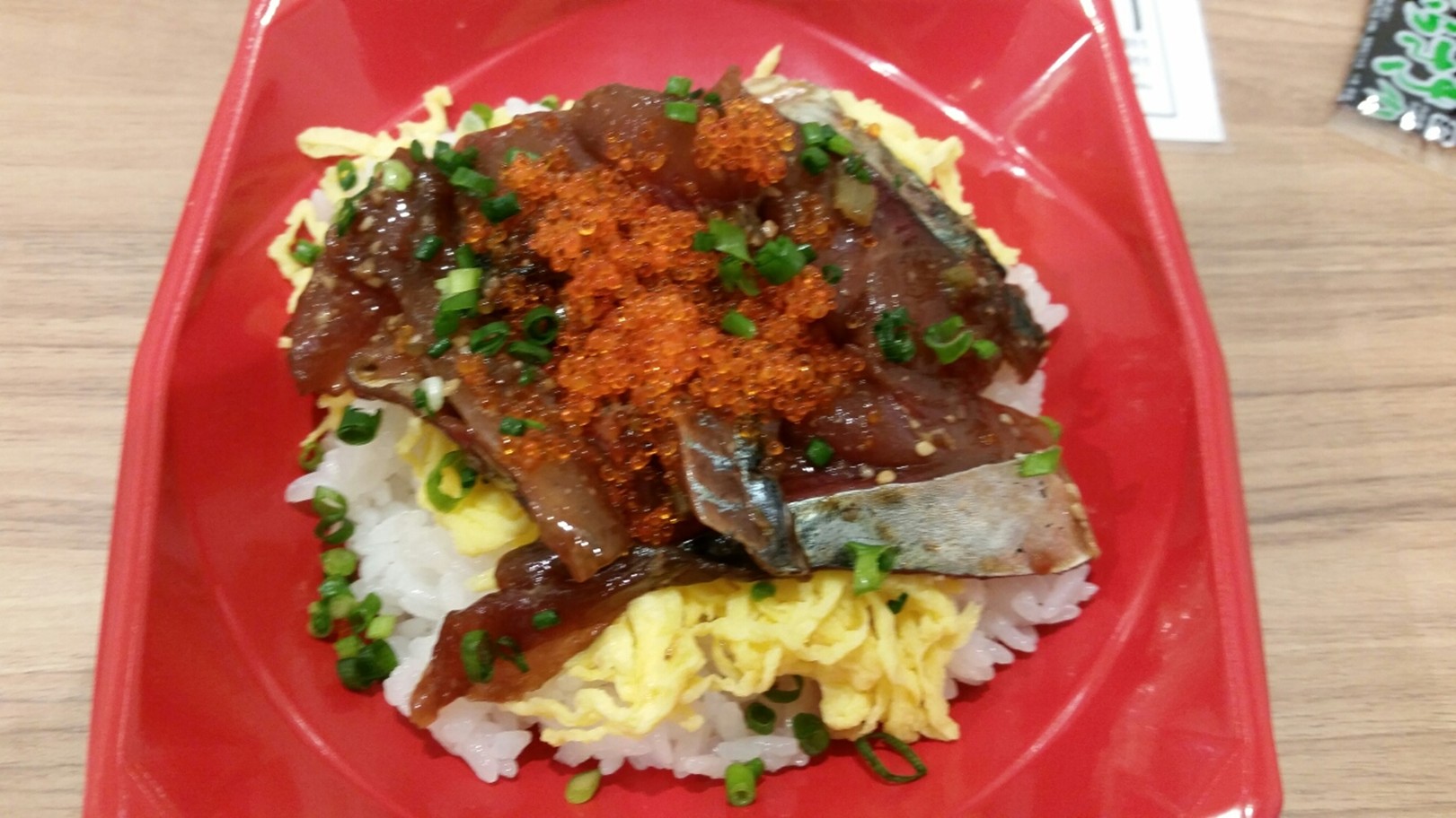 福岡市西区橋本2-27-2 092-811-0011 今日は木の葉モールのこちらのイートインでランチを。 普通にみんな買い物している所に少しだけ席を設けて海鮮丼が食べれるんですよ。 知らない人が多いのと、お客さんがいつもたくさんいて丸見え状態になってしまう。 だからか食べている人を見たこと無いんですよね(笑)。 でも正直食べてみたかったので頼んでみました。 メニューはほとんど500円で色んな丼がありました。 でも今回はこちらをチョイスしてみました。 づけ丼500円。 日によってネタが違うづけ丼らしいですが、この日は鯵だった。 鯵にトビコが乗っている丼。 漬けはしっかり目に漬けこまれていて味が締まっていますね。 そこに酢飯と金糸卵が上手くまとめてある。 量は少なめだけど、これはなかなか価値がありますね。 ちなみに醤油とワサビはつけてくれる。 けど、づけだから醤油はいらなかったね(笑)。 たくさんの種類があるのでまた行きたいな。 面白そうなネタや日替わり丼もあるみたいだし。 でも他の人も食べたらいいのにな、イートインで(苦笑)。 ご馳走様でした!