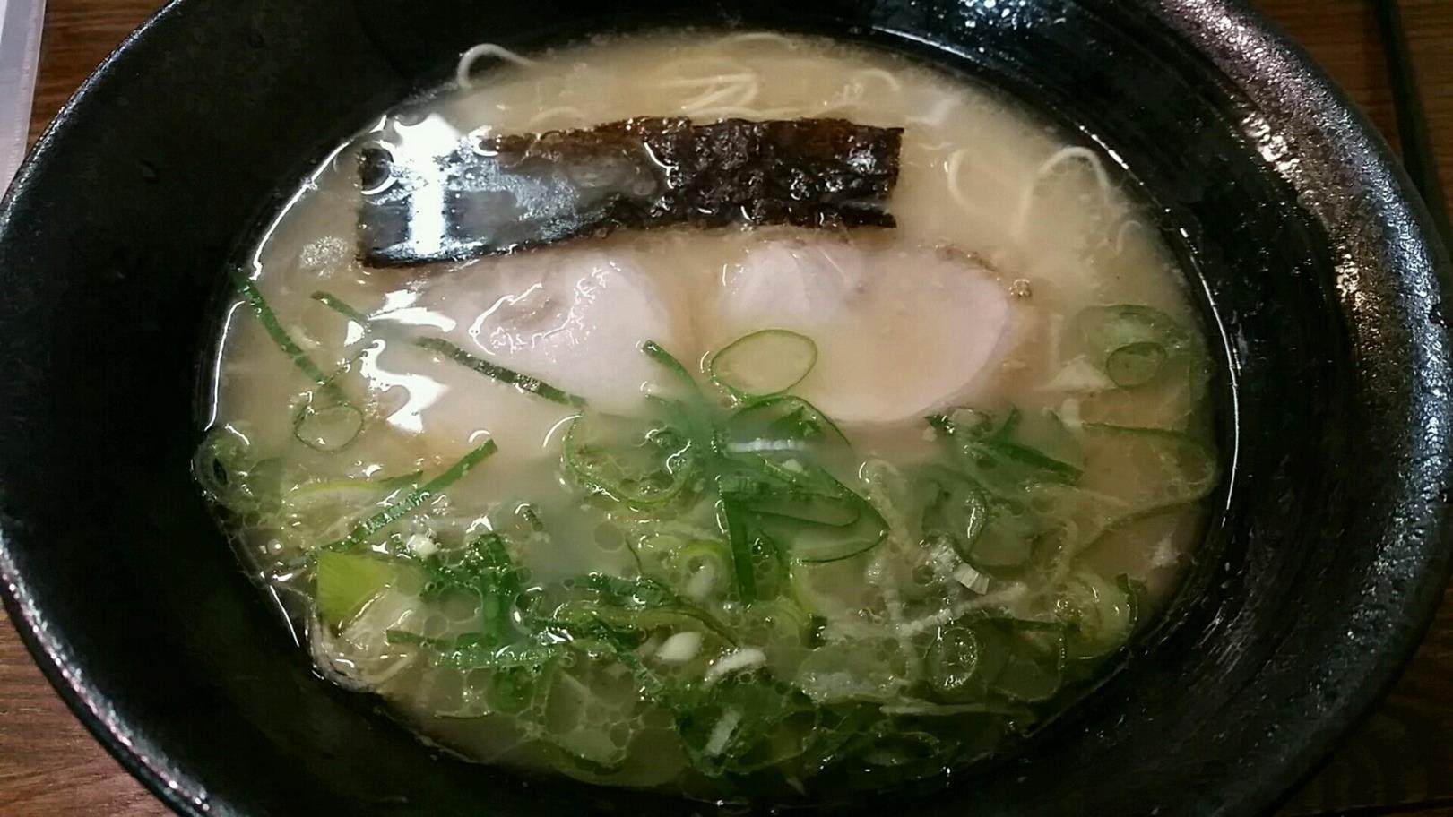 福岡市博多区奈良屋町9-10 092-291-7727 今日は久々にこちらへ。 こちらは久々の訪問となりました。 会社から遠くないのでたまにほかの人が行って。 「濃いスープの店だね」 とか 「薄い軽いスープだね」 という人が居たりする。 ブレが大きいということはちゃんと炊いているという証拠。 たまに楽しみになるんでしょね。 さて歴史あるこちらのお店のラーメンはどんな感じですかね? 豚骨ラーメン500円。 色んなラーメンがある福岡で。 豚骨なども濃かったり、薄めだったり、香りが強かったり、穏やかだったり。 色んなものがあるけど、ここは穏やか系。 薄くない濃くなく。 ジャンクさもあるラーメンで食べやすい。 麺も細目でしゃっきり。 さらっと茹でていて食べやすいですね。 大きな特徴もないけど、ありがたいお店。 軽い気分で食べれるお店ですよねぇ。 また行こうっと!