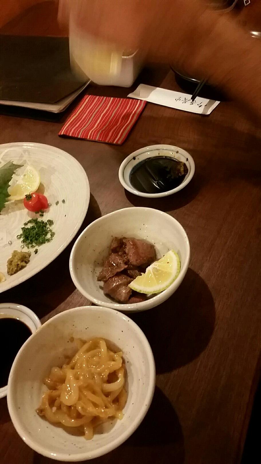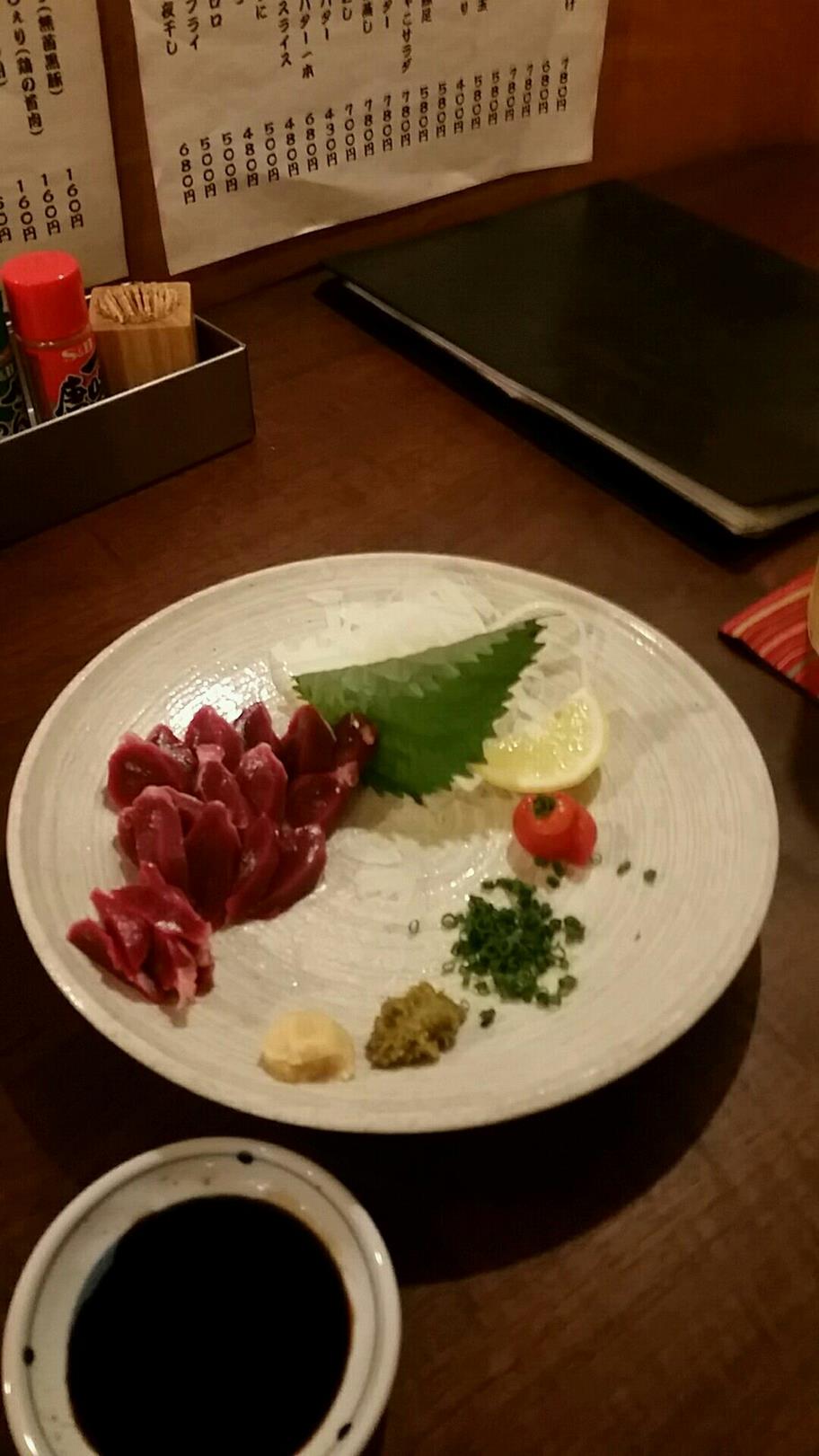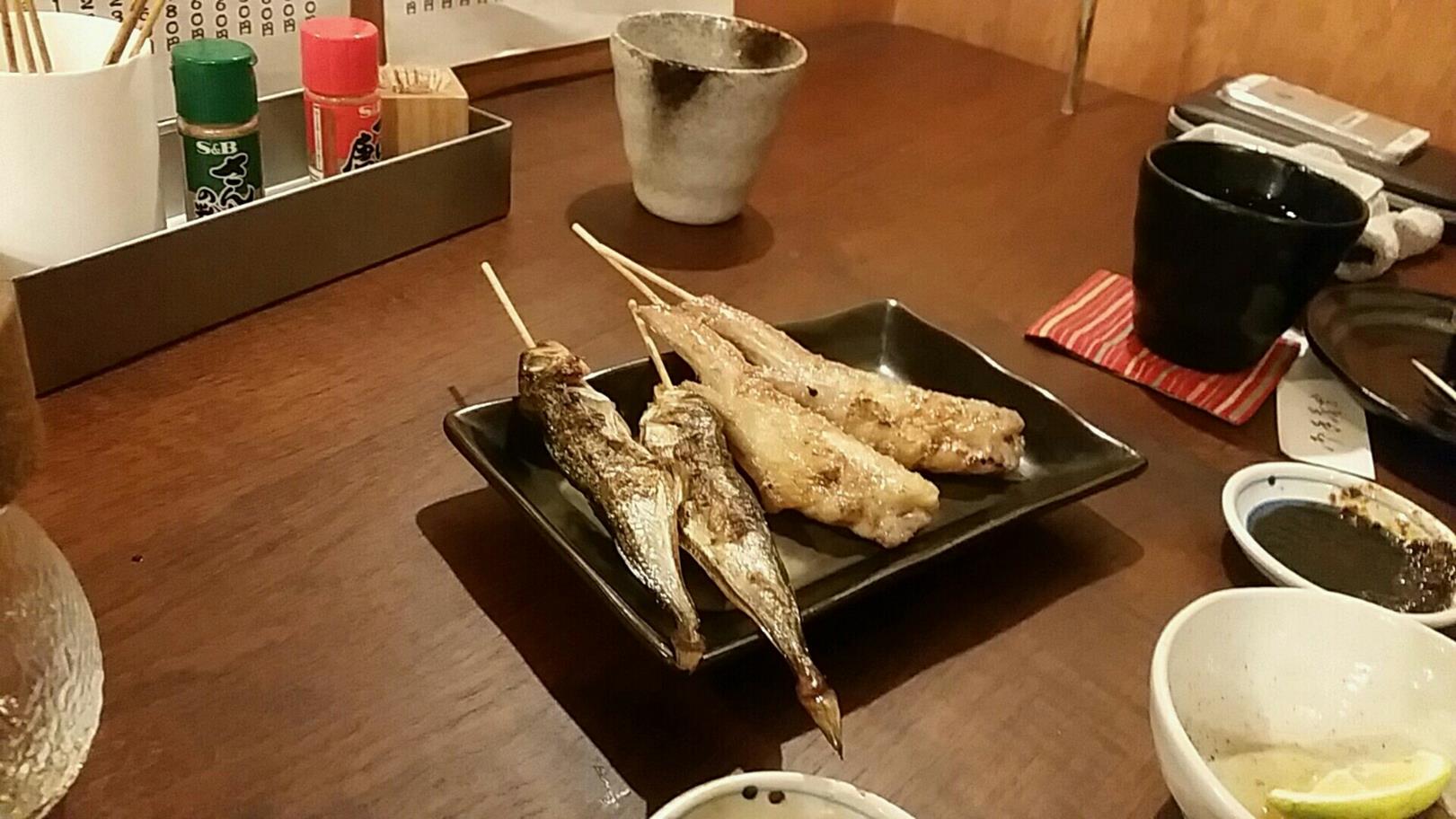 福岡市博多区中洲4-1-19 092-262-8560 今日は会社の先輩を無理やり連れて。 どこかで呑みましょう! ご馳走してくださいよ、なんて言いながら。 無論、最後は割り勘なんですがね(度胸なし)。 ってことで今回は川端商店街内をうろうろ。 偶然というか不思議なビルの2階にあるお店を選んでしまうというところが僕らしいね。 さてこちらは居酒屋というか焼き鳥屋さんというか。 そんなところでこんなものをいただきました。 つきだしやらタンのあぶりやら。 ズリ刺しやら。 甘い醤油が良く合う。 食べさしばかりでごめんね(笑)。 串も5種頼んだのだけど、写真はこれだけ。 でも焼きはしっかりしていて美味しいな。 面白いお店だったけど、話してばかりで集中できなかったな。 またゆっくり食べたりしたいな。 ご馳走様でした。
