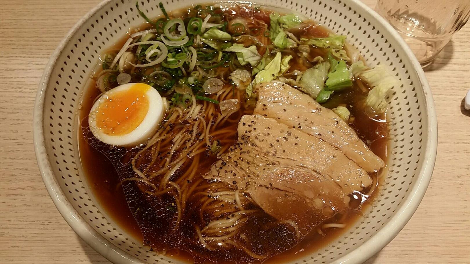 福岡市博多区上川端町11-1 092-409-3399 今日は夕飯を食べにこちらへ。 ちょっとここは不思議なラーメンというか。 福岡に多い豚骨系ではないものが食べれるので。 たまにいきたくなるんですよね。 少し値段も高いのですが、このあたりで考えたら頑張っていると思うし。 さて深夜なのであっさりしてそうなこちらをチョイスしました。 黒わさ750円。 ブラックと呼ばれるような濃い醤油色のラーメンだ。 香りを確かめようと思ってどんぶりに顔を近づけると。 目に沁みるワサビの香り(笑)。 これは凄いな、なんて思いながら食べてみる。 鶏の出汁かな、少し軽めの出汁にワサビの刺激がしっかり追いかけてくる。 水分に弱いワサビなのに、最初のうちはかなり刺激が強い。 山椒のような刺激でむせそうになるけど美味しいなぁ。 これは中毒性のある旨さと言うものかな。 具材はやはりレタスがいい仕事をしてくれている。 甘さがあって醤油にもよく合うね。 鶏炭丼250円。 普通は350円だけど、ラーメンと頼めば250円となる。 鶏は前回食べた金しおの時の鶏と同じだ。 かなり燻製というか炭の香りが強い鶏の味わい。 癖が強いので好みが分かれそうだな。 僕はもちろん癖が好きだけどね(笑)。 面白いラーメンが食べれるのがいいなぁ。 次は夜限定の焼きラーメンも食べてみたいな。 ご馳走様でした! PR