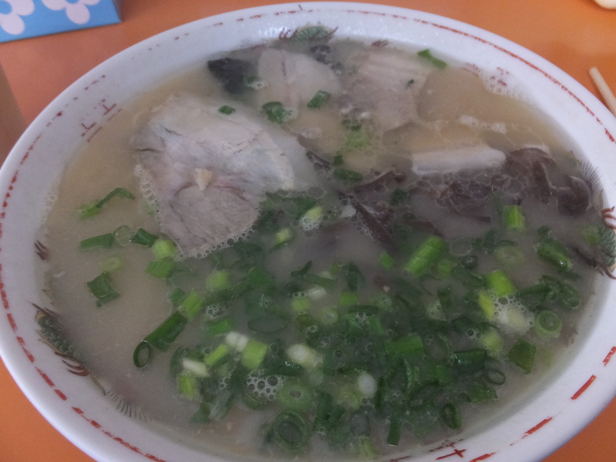 小郡市井上1054-5 0942-72-8834 今日は小郡市で仕事だったのでランチをこちらのお店へ。 昔ながらの中華料理屋さんっぽい佇まいでなんだか安心感がある。 お客さんは既に焼酎を呑んでいたり、新聞を読みながら軽くラーメンを食べてたり。 肩の力は入れなくてもよさそうだ。 さてこちらのお店は中華料理とラーメンが売りみたいだ。 あとはちゃんぽんもあったかな? その中でこちらをチョイス。 ラーメン500円。 豚骨匂いが少し残る懐かしき豚骨ラーメンと言う感じかな。 濃厚さは無いけど、ジャンクさはしっかりある。 脂身がしっかり残っている薄いチャーシューが美味いし、ネギやキクラゲもたっぷり。 甘みも強くないしいいですね。 麺はしゃきしゃきした硬めの福岡らしい麺だったなぁ。 なんとも言えない安心感がありました。 次はちゃんぽんでも食べようかな。 ご馳走様でした。 |