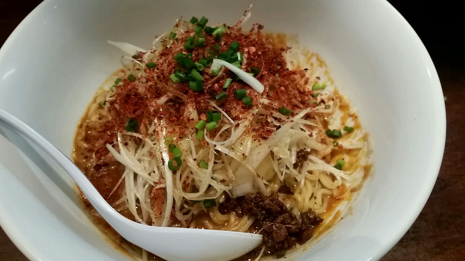 福岡市中央区大名2-10-39 092-725-0055 今日は久々にこちらのお店へ。 少し遅めの時間でしたがまだ開いていたのでありがたく参戦させていただきました。 こちらのメニューを見たら汁無し担々麺は無くなったんですね。 どこにも見当たらなくなっていて、汁ありの担々麺がメインになっていました。 さてどの担々麺にしようかな? なんて思っていざ店員さんに聞いてみるとこんなメニューがありました。 汁無し担々麺750円。 メニューには無いだけでとりあえず作ってくれるみたいですね。 汁は少なめ、辛味は唐辛子メインみたいですね。 山椒の辛味はほとんど感じず。 タレの甘さが気になるところですが、前より解れやすくなっているのはありがたいですね。 具材、特に挽肉がしっかり味が付いていてジャージャー麺的な感じで面白かった。 ちょっと軽く呑んだ後でもいいかもしれませんね。 次こそは汁ありの担々麺を食べてみたいな。 ご馳走様でした。