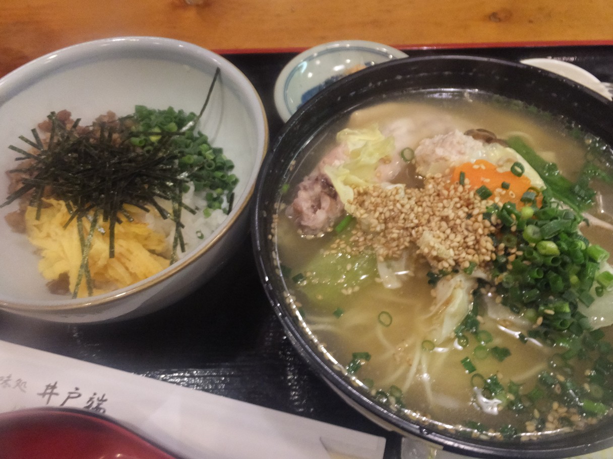 福岡市博多区上川端町4-214 092-282-3579 今日は川端商店街の中にあるこちらのお店でランチを。 ごく普通の居酒屋さんっぽいのですがこちらでは面白いランチをしていると聞いたので早速訪問。 こちらは生簀もある居酒屋さんで夜は魚物と鍋をしているようだ。 メニューを見ると色んなランチをやっている中、期待のランチを見つける。 こういったものを食べたかったんだよね、とチョイスしてみました。 水炊きラーメンセット720円。 たっぷりのラーメンにそぼろご飯がセットされたなかなか豪華なランチだ。 水炊きスープは濁りは少なく澄んだタイプ。 スープをすするとまず感じるのは鶏の軽い香り。 そして何より強いポン酢のような醤油と柑橘系の酸味がまとめている。 鍋のポン酢とスープを合わさったらこんな感じだろうか。 って思えるスープ。 野菜の甘みも少し出ていて鍋としての方が近い気がするラーメンだ。 具材もラーメンっぽくないけど、鍋っぽいと思えば楽しくなるし。 そぼろご飯もたっぷり入っていて味付けも濃くなく美味かった。 最後にラーメンスープをかけてクッパ風に。 贅沢なランチだ。 この値段を考えるととてもお得なランチでした。 次は定食系を食べてみたいな。 いろんなメニューもあって楽しそうだったしね。 ご馳走様でした。 PR 辛くて旨くて汗が出て!