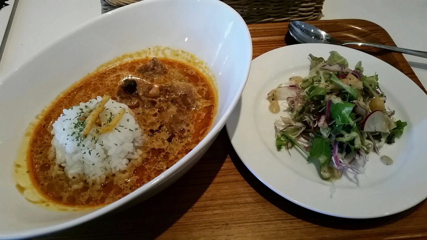 福岡市西区野方1-22-24 092-811-3833 今日は以前から気になっていたカレーショップへ。 こちらは自然派で糸島の野菜などを利用しているカレーと聞いていたのですが。 いつも行くと閉まっていた。 うむ、何故かタイミングが合わないなぁ。 なんて思っていたのですがこの日は偶然か上手くいった。 お店は喫茶店のような雰囲気。 種類はいくつかあるようですが、セットが+50円で色々とついてお得だとわかる。 では早速こちらにしてみよう。 スリランカカレーSサイズ600円+ユーカリセット50円。 スリランカカレーにライスが150gのSサイズ。 そこにサラダとデザート、ジャスミンティが付いてくる。 そらセットにしますよね(笑)。 スリランカカレーは食べた瞬間にココナツミルクの甘さが最初に感じる。 その後スパイスが攻めてくる感じ。 辛さは聞かれなかったので標準の辛さにしてくれたのかな? そこまで辛くは無いですが、さらさらしたカレーは食べやすいね。 少し大きめのチキンが3個程ゴロゴロ入っていて、柔らかくこの優しいカレーによく合っていた。 サラダは苦みが効いた野菜がいいアクセントになって楽しいですね♪ デザートはトロンとした甘さで素敵。 ジャスミンティなんて僕には似合わないのは分かっているけど、落ち着くね(笑)。 美味しかったですし居心地が良いですね。 次はグリーンカレーを食べてみたいな。 ご馳走様でした!
