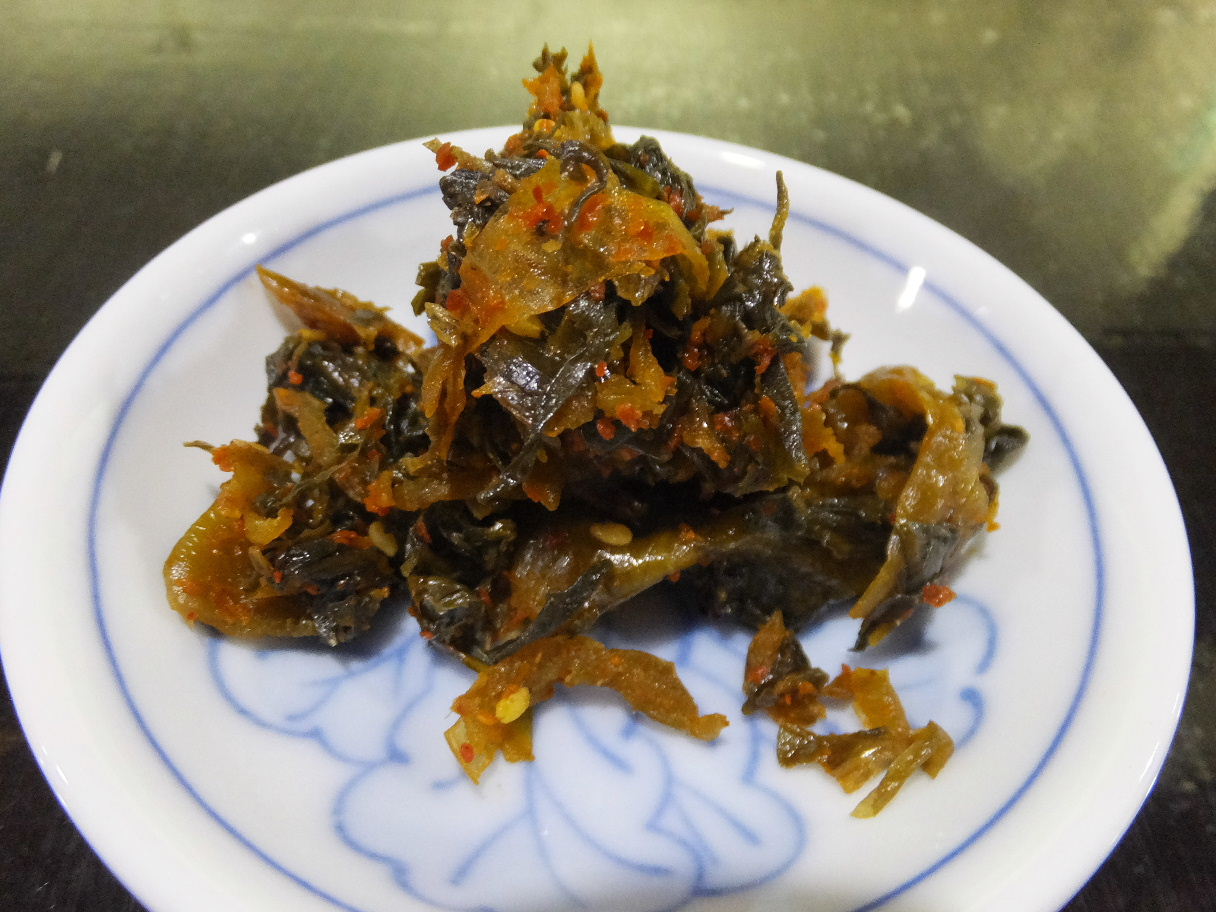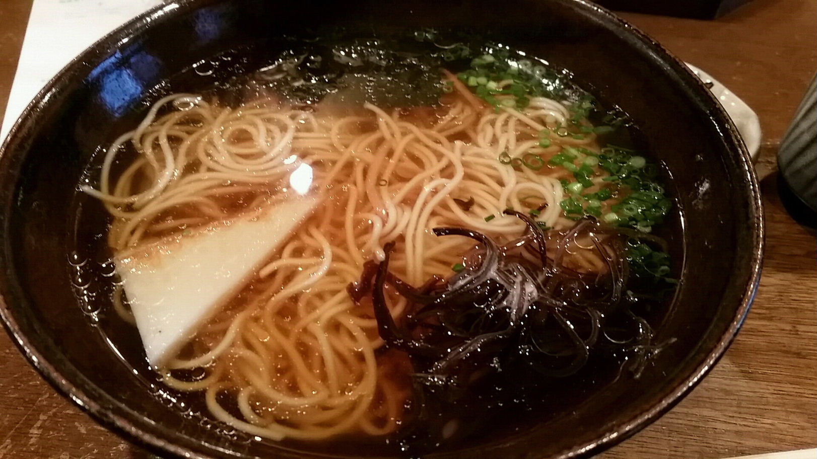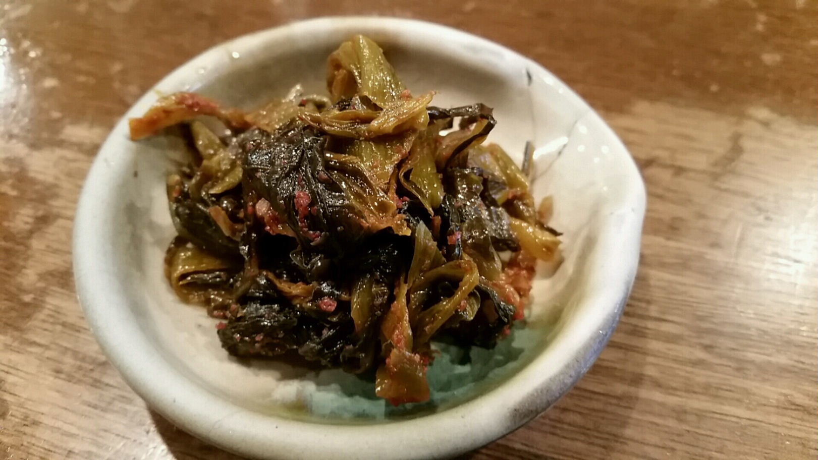 福岡市中央区高砂1-6-13 092-521-6411 今日は以前から気になっていたこちらのお店へ。 たまに行く『かんすけ』さんのそばにあるのだけど行くたびに閉まっていたので、どうなってるんかなぁ? なんて思っていたのですが、今回は開いてました。 でもこちらに入店して分かったのですが。 こちらは本業は辛子高菜の販売だそうで、月・水・金の昼間だけラーメンを販売しているようです。 こりゃハードル高いな。 お店はカウンターが8席くらいで目の前に辛子高菜のパックが置いてある。 これをみんなどんどん買っていく。 人気の高菜なのかな? さて僕は高菜ではなくラーメンを食べたくてこちらをチョイス。 ってその前にまず辛子高菜が出てくる。 軽く辛みが効いていてシャキシャキした食感が良いですね。 塩分もほどほどに効いていて確かに人気なのは納得。 これと焼酎もなかなか愛想ですもんね。 中華そば600円。 こちらとラーメンの2種に分かれますが、ラーメンは豚骨で中華そばは懐かしい醤油味と言われてまずはこちらを。 澄んだ醤油スープに白い麺。 キクラゲと海苔、葱と、丸天の様な物をカットした物が乗っていた。 表面には油がほとんど浮いていないね。 すすってみると、鰹節とかの香りではないけど、節系の様な魚介の香りがする綺麗なスープ。 うどん出汁をしっかりさせたような優しいスープで美味いですね。 麺もあまり中華麺っぽくなく、香りが優しい麺でとてもあっている。 チャーシューもないし綺麗に丸くまとめていることに重視したラーメンかな。 僕はこういったのも好きだなぁ。 美味しいラーメンでした。 こりゃチャンスを見て豚骨も食べてみたいな。 ご馳走様でした!