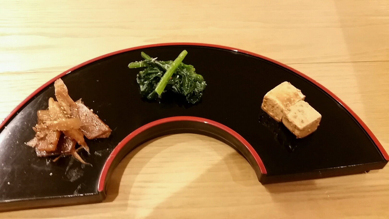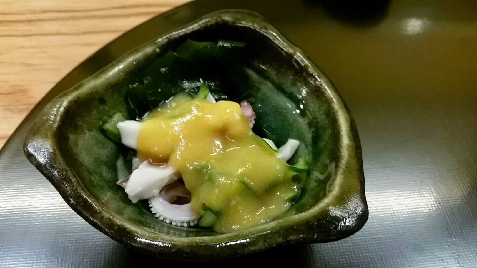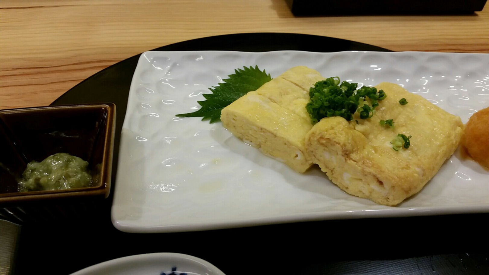 福岡市中央区大手門3-1-16 今日は偶然前を通った時に見つけたお店へ。 綺麗な和食のお店かな? 料理のタイプが分からないですが、お花が沢山積んであって新店だと言うことがわかり、せっかくなので訪問を。 場所的には蕎麦の「出谷右衛門」さんのすぐそば。 入って見るとどうやらお寿司とかがメインなのかな? 寿司の準備をしておられた。 板前さんは4人かな? 花板さんというか、メインの人がおられて後は奥にフォローをされている人が居たかな。 さてまずはこちらが出てきました。 つきだし。 イカの足の部分や身の端を酢味噌和えで。 食べてみるとイカは柔らかく、酢味噌には少し柚子か何かの香りがついてあって爽やか。 甘みがちょっと強めの味付けですが丁寧さが感じられますね。 美味しいです。 刺身3種1,500円。 刺身は何がありますか? って聞いたら「三種にしたら鯖がつきます」 と言っていただいたので。 鯖は厚くしっかり切られていた。 他のネタは説明はなし。 どのネタもしっかりしていて美味しいのだけど、少し残念だったのは貝かな? 少し臭みが気になった。 柑橘系の物を絞って食べたけど、ちょっと強かったかな? 鯖は流石の旨さ。 だし巻き卵480円。 それを頼んでいると、お酒を呑んでいたからか。 「お酒のアテに」 とわさび漬けを頂いた。 これがまた辛みがしっかり効いていて旨かった。 こりゃ酒が進むね。 なんて思っていると出てきただし巻き。 柔らかいけど、だしがたっぷり系ではなくしっかり卵の味わいもあるタイプ。 でも味付けは結構甘め。 これは福岡独特なのかも知れないけど、こういう和食屋さんだと特に目立つ感じ。 でも出汁が綺麗なのかお酒に合う美味しいだし巻きでした。 お酒は日本酒や焼酎、ビールも生と瓶があり。 ワインもあった。 僕は日本酒に直ぐ行ったけど、300円からあり。 でもスペックとかは書いてないのでよく分からなかった。 どうせならわかりやすくしてもらえたら行きやすいな。 美味しいお店だし、また色々変化していったらはまりそうだ。 ご馳走様でした!
