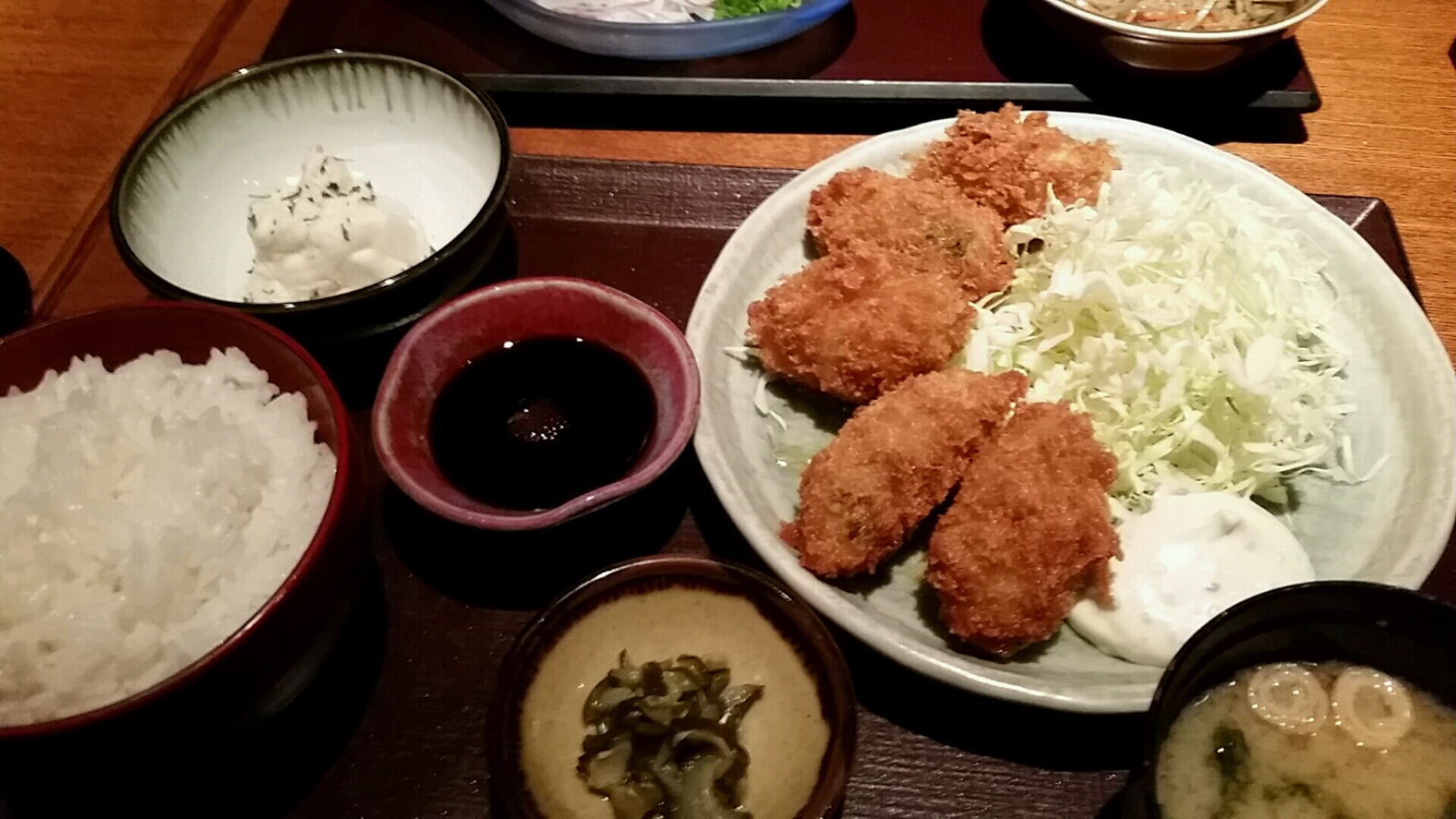 東京都千代田区内神田3-13-4 03-5209-6670 今日は久々のお江戸東京へ。 東京の事務所の人とランチをすることに。 せっかくの東京ですが日帰りなのでランチくらい美味しいものが食べたい! って伝えると最初に連れてってもらったお店が「博多ラーメン」のお店。 せっかくなのですがパスさせてもらって(苦笑)、何処か他にですか? って言ったら連れて行ってくれたお店。 って言っても鹿児島料理店ですが(苦笑)。 九州から来たのですが、って言いたくなったのですが仕方ないですよね。 お店は居酒屋さんですが、奄美の料理というものがたくさんあった。 ラフテーやりゅうきゅうなんて魅力的ですが、少し高く感じたので僕はこちらをチョイス。 カキフライ定食850円。 大きなカキフライが5個のった定食にご飯やポテトサラダ、味噌汁と漬物かな。 カキフライは広島産と言うことで思わず注文しました。 立派なカキフライは少し味わいは薄めというか香りは軽い。 でも熱々のカキフライが食べれると嬉しいよね。 ソースをつけながら食べるとたまりませんね。 ご飯も美味しいし、嬉しい定食でした。 良いお店だと思うな。 いつか九州の料理を食べながらお酒でも呑みたいな。 その時は焼酎で♪ ご馳走様でした!