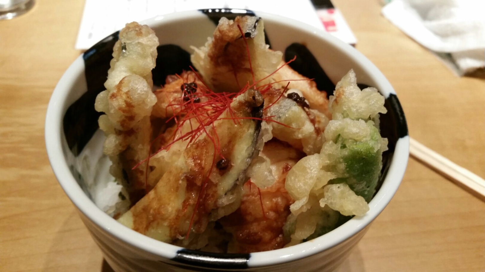 福岡市博多区下川端町10-5 092-272-0920 今日は久々にこちらのお店へ。 OPENしたての時以来なので、約2ヶ月半振りかな。 前回の行列は流石になくなりましたが相変わらずの人気店ですね。 店内は広いし、時間をランチタイムから少しずらしたのにまだまだ沢山のお客さんがいた。 店員さんは多いけどキビキビ動くし良いですね。 中央区にある本店は月替わりのメニューとなりますがこちらは固定メニューのランチとなります。 3種類あり、今回はこちらをチョイスしました。 鶏天丼950円。 他は親子丼、唐揚げ定食となります。 鶏天丼はしっとりとしたササミのような部分を使った天麩羅がたっぷり使われている。 さくっとした感じの食感で気持ちいいですね。 野菜もたっぷり、少し衣が少し強めに強調しているのが特徴かな。 タレは甘みが強くないのが嬉しいし、あまりつゆだくでないのが嬉しいな。 〆は天丼の奥に入っている揚げた半熟卵を砕いて、卵かけご飯に。 温まった卵のTKGは美味いに決まっていますよね。 これにいつもの水炊きの出汁がついてくる。 とても満足。 あえて言えばもう少しボリュームも欲しいかな? 美味しかったです。 次は定食かな? ってよりいつかは水炊きを食べなくては! ご馳走様でした!