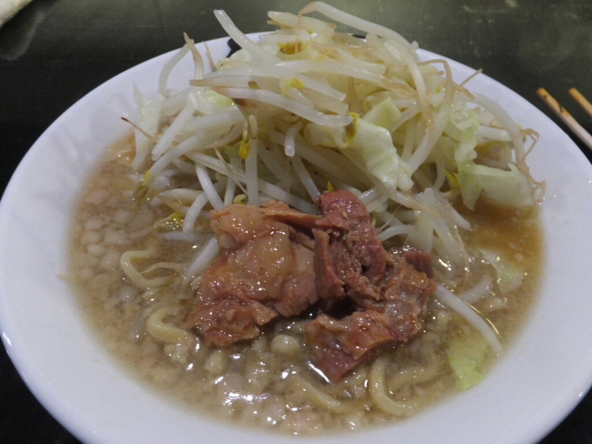 福岡市中央区舞鶴1-6-14 092-714-6776 今日は以前から気になっていたこちらのお店へ。 何度か行こうかと思ったのですが、どうも行く勇気がわいて来なかったんですよねぇ。 って言うのもこちらは俗に言う「二郎系」と呼ばれるお店。 こってりスープに脂が浮いて野菜と肉もたっぷり、って言うのが僕のイメージ。 どんなんだろう、って思って入店して、食券を見ると。 僕の思うメニューもあったけど、見た目そこまで凄いものでもないな。 なんて思って安心して購入。 どうなんでしょうねぇ、って待っているとテーブルに。 辛子高菜があったので頂いてみた。 そこまで辛くなく、酸味も弱い。 僕はあまり辛すぎるとせっかくの漬物がもったいないと思っているのでこれくらいがいいや。 ラーメン。 えーと、580円くらいだったかな? たっぷりの野菜、そして柔らかく煮込まれた肉が載っている。 麺は太麺が選べてたのでそっちをチョイスさせてもらった。 スープにはかなり脂が浮いていてこれがくにゅくにゅとした食感と脂の甘みを出していた。 スープ自身はちょっと酸味を感じる豚骨でしょうか。 しっかりしていて面白いけど、僕の歳では少し重いな。 野菜で上手にマスキングして食べました。 そして思った通り塩分も強かった。 若い人向けですなぁ(汗)。 ってよりそれだけおっさんになったと言うことか。 でもなかなか美味かったな。 次はつけ麺にしてみたいな。 ご馳走様でした。