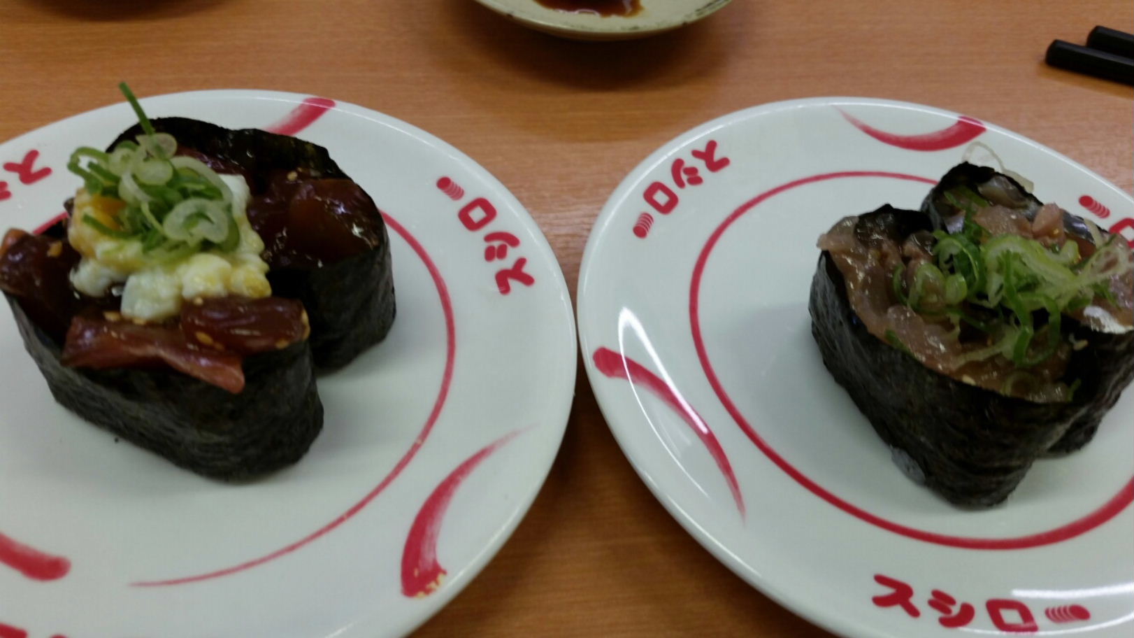 福岡市西区野方1-6-5 092-812-8560 今日はちょっと以前から回転寿司のラーメンが安くて旨い! ってうわさを聞いていて興味を持っていました。 でも何となく、食べてなかったなぁ。 しかし今回偶然機会があってこちらのお店に行くこととなった。 お店は人気ですねぇ。 家族連れからお一人様まで一杯で昼の時間を外したにもかかわらず、後で行列が出来ていました。 さて期待のラーメンを食べてみましょう! 鶏そぼろ入り西京味噌ラーメン302円。 醤油ラーメンもあったけど、ちょっと当たり前かな? なんて思ってこちらをチョイス。 魚介の出汁を使っているお店もあるらしいですが、こちらには使っていないのかも知れない。 鶏出汁は確かに感じますし、西京味噌の甘みがなかなか合いますね♪ 説明には七味唐辛子を入れたら甘みが抑えられて美味しいとの説明が。 しかし探してもない(苦笑)。 さらに店員さんに聞いても分からないとのこと(汗)。 麺は丸い感じの中華麺。 特別感は無いですが、ラーメンを食べている気になる。 この値段で考えるとありがたいですね。 黒ミルガイ108円。 さすがにラーメンだけとはいかないので回転寿司も(苦笑)。 今の企画品らしい。 甘いミル貝で嬉しいですね。 鰹ユッケ・ゴマ鯖108円。 見た目が少し悪いけどなかなか面白いメニュー。 玉子と甘辛いタレが合わないはずがない鰹。 胡麻との相性が良い鯖。 面白みではなく安心の旨さですね。 なかなか面白いし、最終的には安くすみますね。 こりゃ色んな回転寿司屋さんのラーメンも食べてみたいな。 ご馳走様でした!