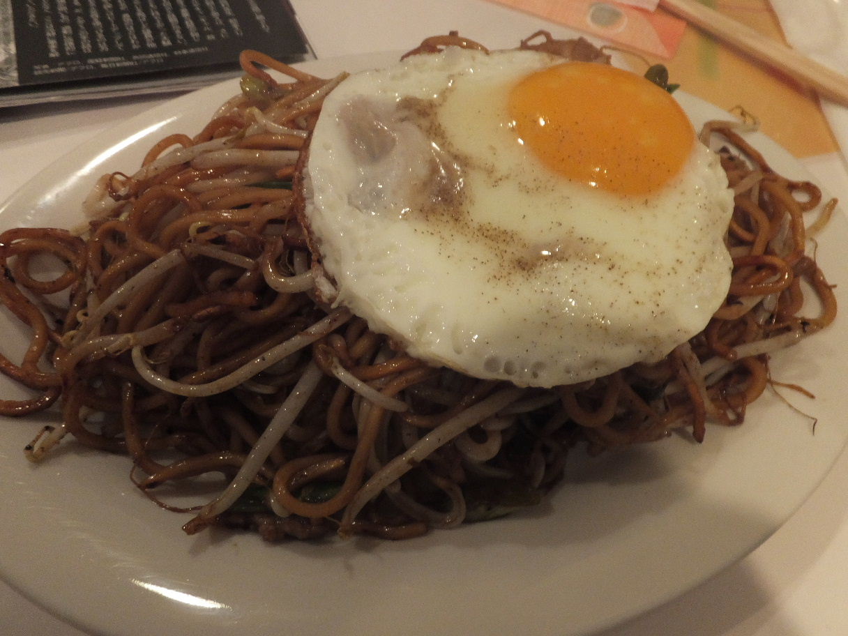 福岡市早良区室見1-3-1 092-831-1711 今日は最近OPENしたのではないかな? って思える焼きそばの専門店へ。 ってよりこちらは「オリーブ」という美容院が経営している焼きそば屋さんと言うことかな? 電話番号が隣のお店と同じだった。 お店はおじさんが一人でやられていて、少し店内が煙い感じになっていた。 焼き肉屋さんをイメージしたら良いかもしれないね。 きっと僕の前にお客さんがいて炒めたんだろうな、って香り。 さて、メニューはシンプルに焼きそばが何種類かとお酒くらいかな? ってことでこちらをチョイス。 焼きそば目玉焼き乗せ800円。 単品では680円、ランチタイムにはミニライスがつくらしい。 一目で見て『想夫恋』 さん系のお店だと分かる。 カリカリになった麺、もやしたっぷり、ちょっと量が多め。 そして少しオイリーに見える焼きそばの姿が。 食べてみるとやはり油っぽさは感じるね。 でもカリカリした食感はやはり気持ちいいし、もやしもたっぷりで嬉しい。 途中で目玉焼きを潰して食べるとその油っぽさも少しマイルドになる。 ソースは濃すぎず、酸味も軽く強い個性はないけど、この焼きそばにはとても合っていると思う。 香ばしさを際立たせているのもこのソースのおかげかも知れないし。 間違えのない味わいで良かったです。 僕はもう少し野菜が入ると嬉しいけど、多分この分野の焼きそばはこれが良いんだろうな。 次はビールを片手に食べてみたいな。 ご飯より合いそうな気がする(笑)。