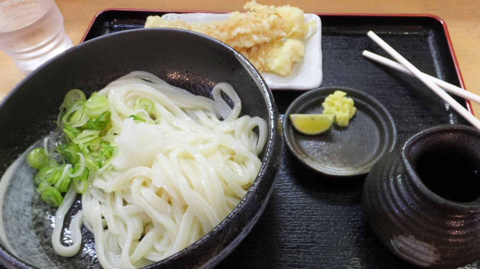 福岡市中央区舞鶴2-8-29 092-771-7187 今日もランチは遅い時間。 ってことでこの時間に食べれるお店を探して見つけたお店。 こちらは通勤中に気になっていたお店なんですが、なかなか行けなかった讃岐うどんのお店なんですよね。 入るとセルフ式ではなくちゃんと手配してくれるのが嬉しいお店。 お店には今日のお薦めメニューとか書いてあって頼みやすいとかいろいろありがたいね。 さて僕はこちらをチョイス。 揚げ物も欲しくなるよね。 ぶっかけうどん(冷)520円+ちくわ天2個100円。 ちなみにちくわ天は1個から注文可能(50円)。 うどんは透明的の綺麗なうどんが出てきた。 軽く汁をかけて食べてみると、ちょっと茹で起きだったかな。 これは行った時間が遅すぎたので仕方ないよね。 でも滑らかさがあって丁寧なうどんだと思う。 汁は甘みのあるタイプで福岡らしいなぁ。 生姜もきっちり使えて嬉しかった。 ちくわ天はよくあるしっかりした硬めのちくわではなく家庭的なちくわ。 醤油でも良いのだろうけど、汁で頂いた。 ここはきっと美味しいうどん屋さんだろうなぁ。 もっと早い時間に行きたいな。 そして次は温かいうどんを素うどんで食べたいな。 ご馳走様でした。