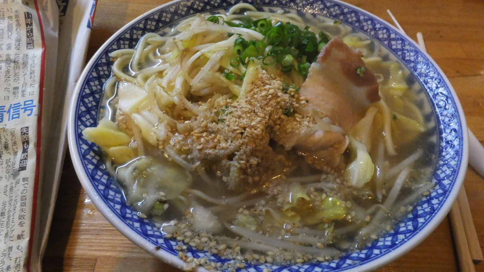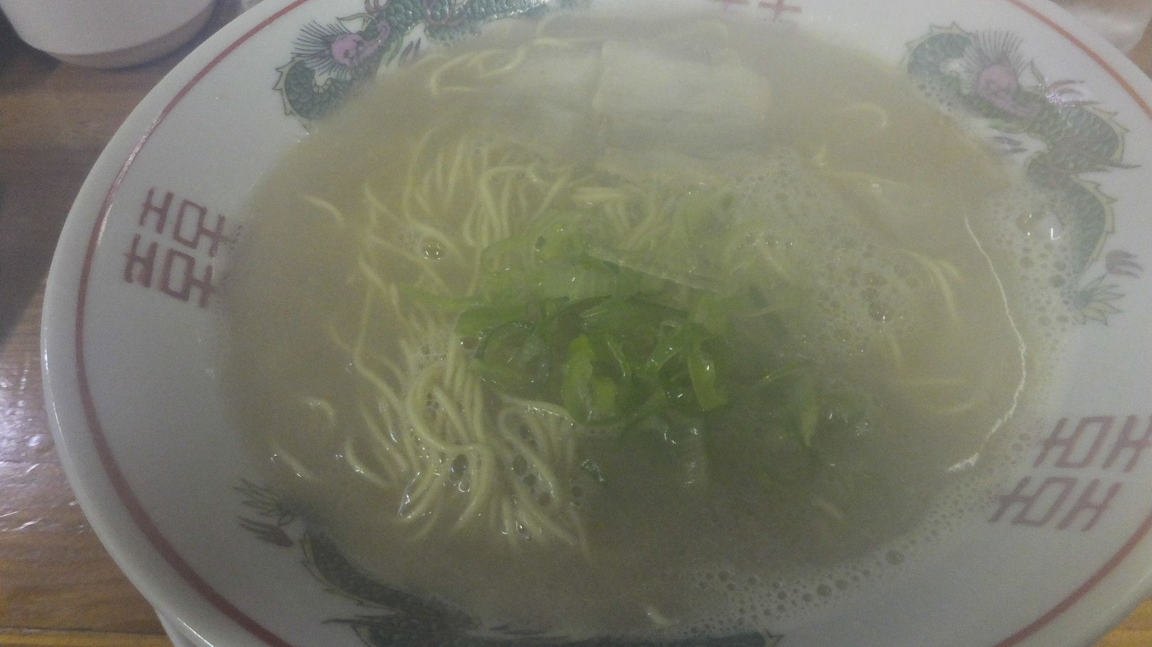 福岡市西区上山門1-8-11 092-882-7311 今日は疲れて帰った日の夜に立ち寄ったお店。 家から近いのですが結構わかりにくい場所にあるラーメン屋さん。 今日まで全く気付かなかった(汗)。 周りは居酒屋さんとかスナックとかある場所にぽつりとあるラーメン屋さん。 入るとカウンターと小上がりがあって、小さそうなお店だけど意外と人が入れそう。 お店はご主人さんと女性のお二人でやっていた。 メニューはラーメンとチャンポン、そして炒飯がメインかな。 餃子もあったっけ? ご主人さんが豪快に中華鍋で炒飯を炒めてて美味そうだったけど、僕はとりあえずこちらをチョイス。 ラーメン390円。 曇った(汗)。 何年日記を書いてるねん・・・。 しかし値段が安いですね。 豚骨っぽいラーメンですが、大きな特徴はなさそうだなと思ってスープをすすって。 ちょっとビックリの濃度があった。 しっかりとした強さと濃度にちょっとジャンクさを加えているラーメン。 臭みは軽く、しっかりした味わいに驚く。 麺は博多らしいしゃっきり茹でられていた。 チャーシューはごく普通だけど、ラーメンとしてはとても美味いと思った。 ちょっと穴場だったな。 次はちゃんぽんかな? いや、炒飯も面白いかも。 ご馳走様でした!