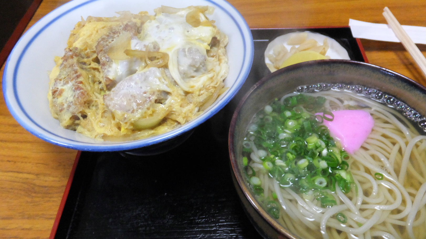 福岡市早良区有田2-27-11 092-821-6640 今日はひっそりとした場所にある蕎麦屋さんへ。 蕎麦屋さんには粉からこだわって道のような物を見つける方もおられる。 僕もそう言った蕎麦屋さんが好きだけど。 こちらはそう言ったお店ではなく、庶民的で優しい感じの蕎麦屋さん。 入ると昔ながらの古めかしいお店で、メニューもわかりやすい。 お茶が出てきてメニューを見てテレビを見ながら料理を待つ。 僕はお腹が空いたのでこちらのチョイス。 さてどんな感じかな? カツ丼セット780円。 カツ丼とかけそば、そして漬物。 カツ丼はしっかり卵に火が通っている。 蕎麦は更級のような綺麗な蕎麦ですね。 伸びる前に蕎麦を食べていったけど汁がとても甘い。 色合いは綺麗な透明汁で美味しいけど、甘さがココまで際立つのは珍しいね。 腰があるというより柔らかく優しい食感の蕎麦ってのも良いね。 カツ丼は柔らかい不思議な肉のカツに甘いタレ。 タレはちょうど良いくらいの量でありがたい。 硬めの卵に甘い味付けが良く合っているね。 漬物も白菜の醤油漬けとたくさん。 十分でしょう♪ 安心のランチとなりました。 次はうどんもあったからそっちも良いなぁ。 ご馳走様でした。