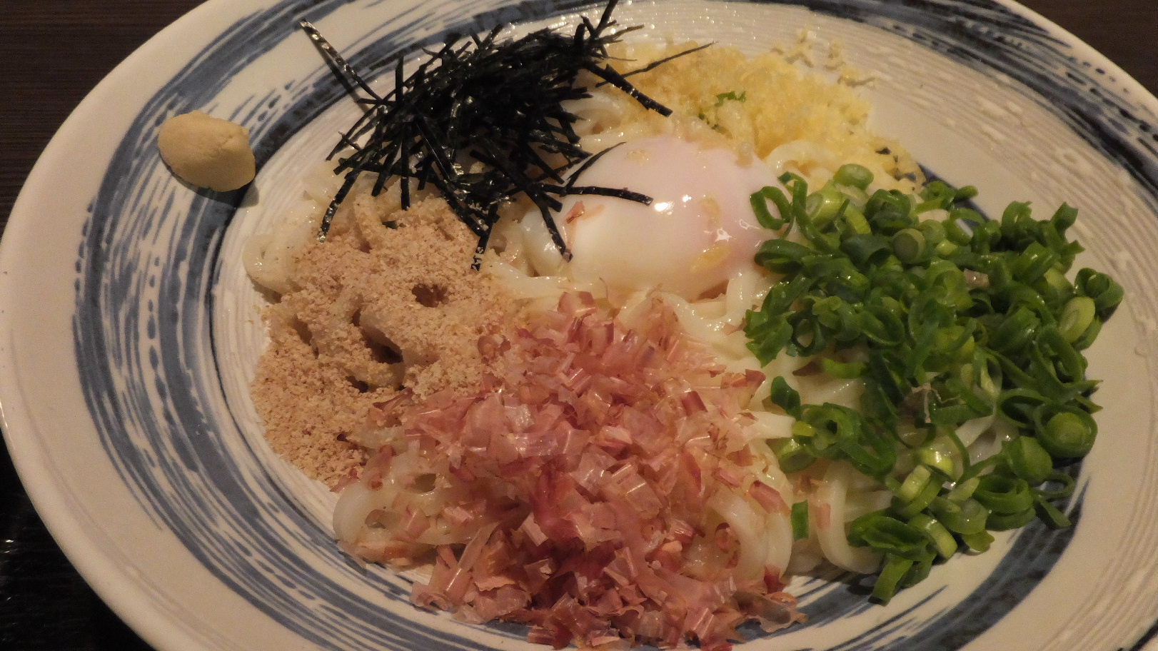 福岡市博多区店屋町3-32 092-262-3223 今日はまたランチ難民に。 まぁ14時半にやっとランチなんて言うのだから仕方ないよね。 って事で空いているお店を探していると見つけたうどん屋さんへ。 立派な造りのうどん屋さんだったけど、ランチ時間はまだあったのがありがたい。 ありがたく入ってみると、お店はファミリーレストラン的な造りでカウンターが無く全て個室になっていた。 一人でで個室なんて申し訳ないな。 なんて思いながら足を伸ばさせてもらった。 メニューを見るとうどんすきがメインのようだが、こういったメニューもあったのでチョイス。 値段もありがたいしね。 ぶっかけうどん650円。 うどんは冷やしと温かいのが選べるようだが、僕はぶっかけなら冷やしの方が美味いと思うので。 温かいとやっぱり表面がべたつく事が多いので。 具は薬味的な海苔、葱、天かす、ゴマ、鰹節、温泉卵に辛子だ。 軽く混ぜて食べてみると、流石に博多うどん。 腰はほとんど無い、柔らかい食感。 水で〆ているけどこの食感は変わらず。 いや、やっぱり〆ているだけに少ししまっているかな? だから博多うどん的な柔らかい感じは無いのが逆に残念かも。 汁はとても甘い後味のあるタレで面白い。 福岡の醤油の甘みだけではないと思うのだけど癖になるね。 面白いうどんでした。 次は丼物のセットも食べてみたいな。 ご馳走様でした。 PR