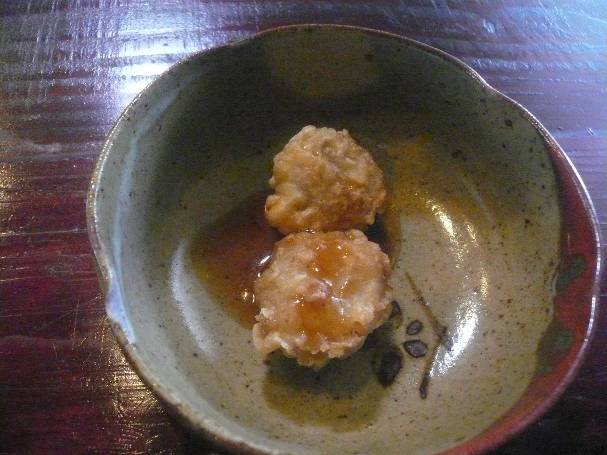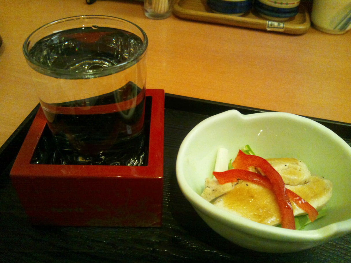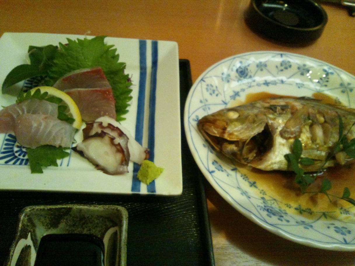 福岡市西区姪の浜4-8-2 092-883-9339 今日はいつも降りる姪浜駅の駅ナカにある居酒屋さん。 駅を降りる度にいつか行こう、いつか行こう。 なんて思ってながらなかなか行けなかったお店。 ランチもやっているのでランチから行こうかな、なんて思ってたのですが偶然お誘いがあってこちらのお店へ夜に行ってみました。 小さなお店かと思っていたのですが、意外と中は長くカウンターも10席近くあった。 さて、以前から気になっていたこのメニューをチョイス。 晩酌セット1,350円。 お酒1杯に小鉢、大皿料理から1品、刺身3種がついてくる。 お酒はもちろん日本酒を。 熱いグラスに熱燗の本醸造と鶏ささみの南蛮漬けみたいな料理。 鶏はしっとりというか少し硬く仕上がっている。 噛みしめると美味しいね。 ちょっと歯に引っかかりますが(すきっ歯)、あっさりしていて美味しいですね。 刺身3種・平アジ煮付け(晩酌セット)。 刺身はカンパチとタコと、ヒラメと言うこと。 ・・・ヒラメかな? ちょっと刺身は乾いていたので寂しかったかな。 大皿は焼きガキも気になったのですが、ちょっと冷たくなってたらいやだったので平アジの煮付けをチョイス。 大きな平アジは食べ応えがあるね。 ちょっと冷えて硬くなった身を甘みの押さえた汁で食べるとなんだか美味い(笑)。 甘みが少なかったから酒にも合うんだよね。 これで終了。 ぴったり1,350円という安さがありがたい。 次はランチを食べてみたいな。 ご馳走様でした。