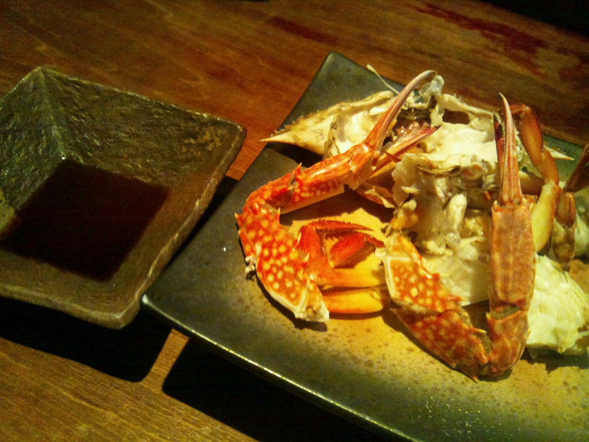 福岡市西区福重5-4-18 092-883-2362 今日は家の近くにある居酒屋さんへ。 海鮮系が人気と聞いていたのですが、入ると納得。 大きな生け簀があり、そこにコブの大きな鯛やツメに藻が沢山付いている蟹、小さめな穴子なんて沢山泳いでいた。 ほうほう、これは凄いな。 スタッフは白のシェフスタイルで走り回っていてなんだか気持ちいいし、和風の造りなのでちょっとした違和感が気持ちいい。 お洒落と言うべきかな? さて何を食べようかな、なんて思ってメニューを見ているときに来たつきだしを。 つきだし。 バケットの上にトマト煮子込みが。 周りはオリーブオイル。 トマトがなかなかフレッシュな感じなのに濃縮度もある。 煮込んだトマトとその後に入れたトマトを分けているのか? 肉はチキン。 つきだしというカテゴリの中ではホントに手が込んでいる。 こうやがに680円。 こうやがにって福岡で捕れる小さな蟹みたいですね。 これを蒸してくれたのかな? 蟹をそのまま1匹出してくれた。 少し甘みの強い醤油味の付いた蟹酢で食べる。 蟹自身は小さいけど実は甘いね。 必死にほじくり返すと甘い身が出てきて幸せになる。 内子も入っていてこれが濃厚で美味い。 蟹の繊細な甘さに身の強い旨味。 そして内子のネットリとした旨さが食べれる。 ありがたい料理をチョイスできたな♪ かずちゃんサバサンド480円。 ほんとに福岡はサバサンドが多いですね。 さてこちらのサバサンドはコッペパンで挟むタイプ。 かぶりつくと、薫製しているのかな? 軽く香りがするけどそれ以上に鯖の生臭さが出ている。 これはちょっと苦手だな。 ちょっと時間の経ったタイプの匂いは僕はダメなのでちょっと厳しかった。 でも全体的のいい店だと思う。 次はもう少ししっかり食べたいな。 ご馳走様でした!