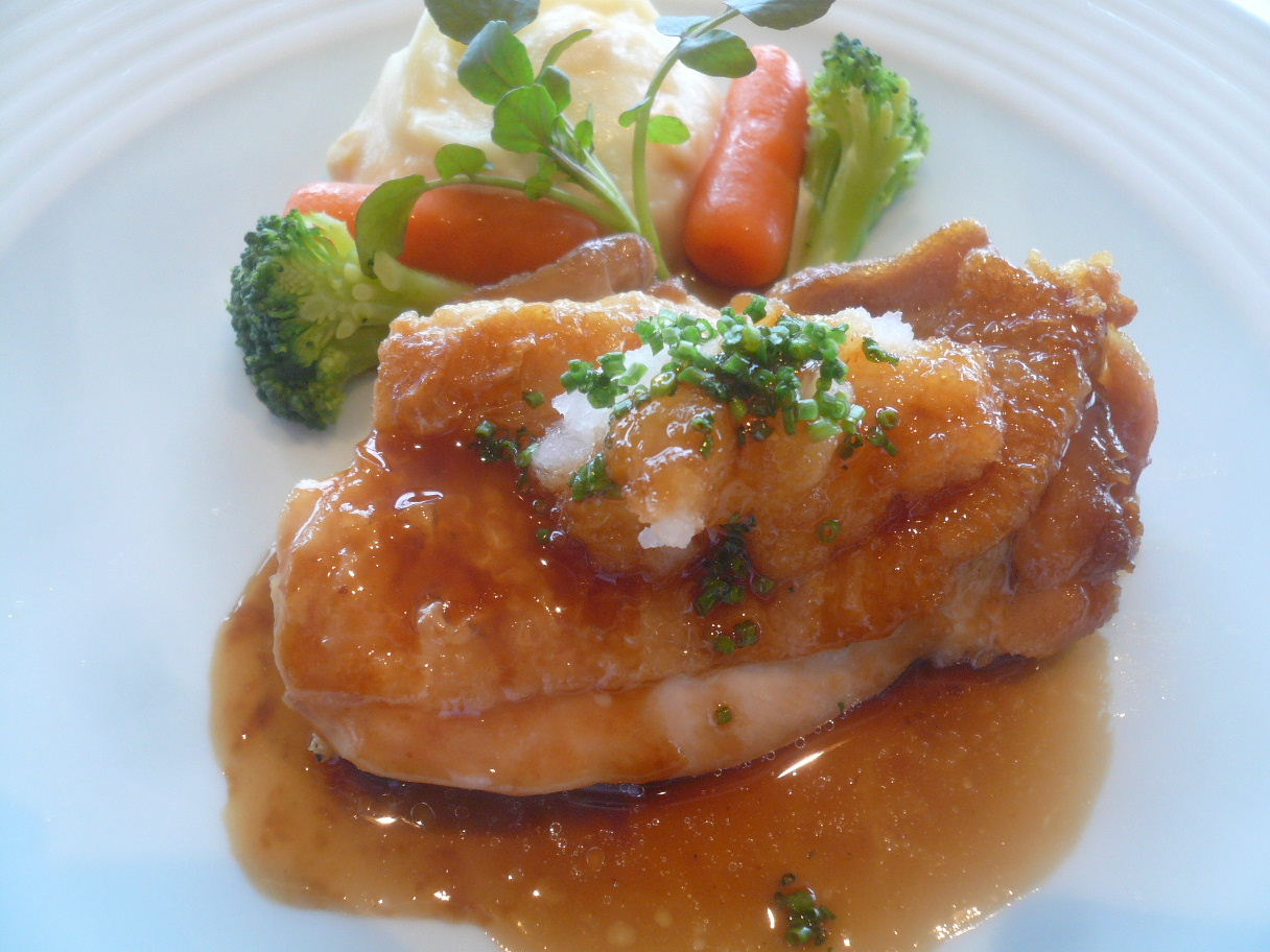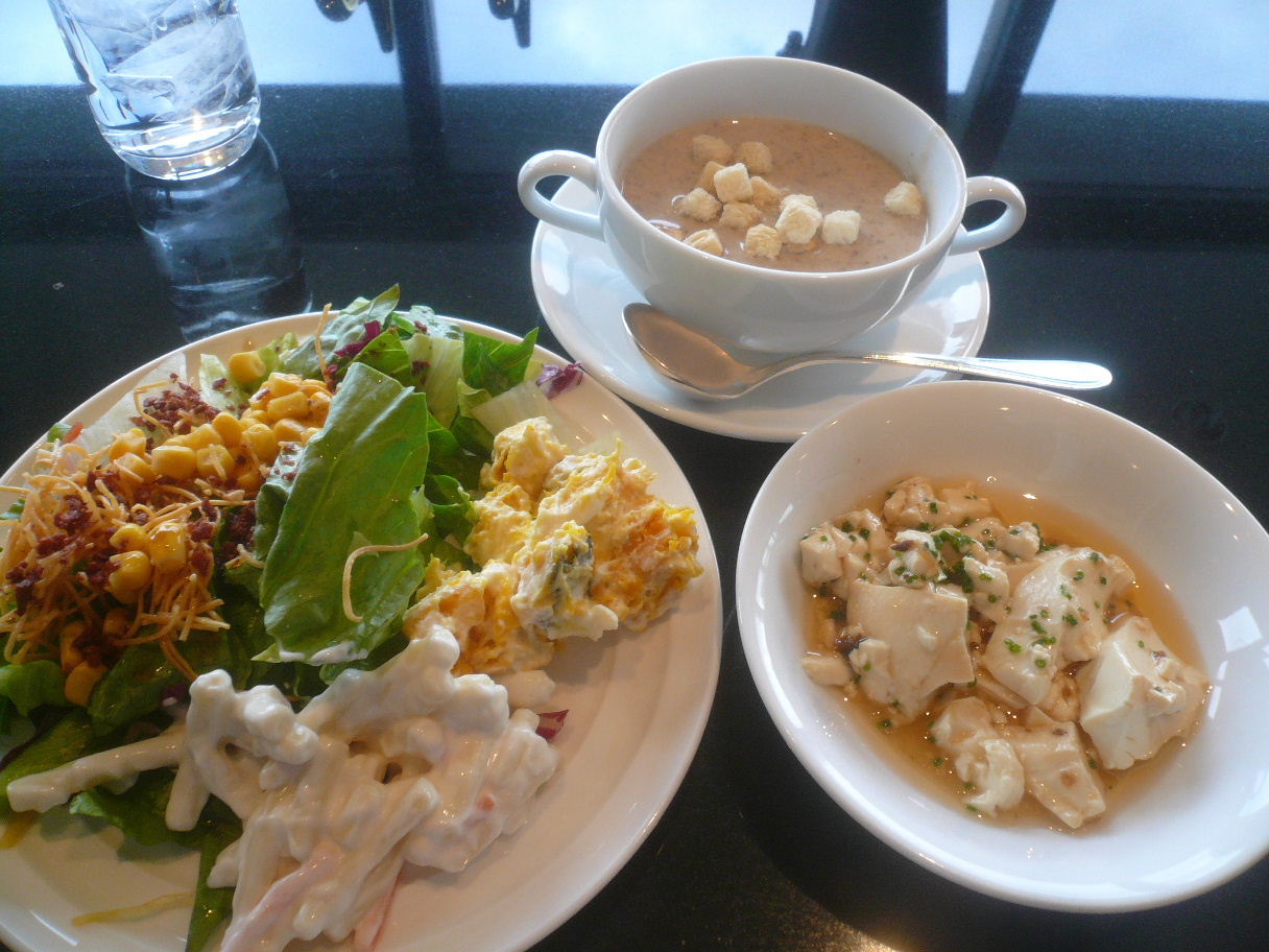 福岡市中央区天神1-16-1 13F 092-712-5775 今日は昨年も寒い時期に行ったこちらのお店へ。 寒い時にちょっと豪華に。 年末だからちょっと豪華に。 なんて思ってホテルの料理を頂きました。 ホテルの13階だったかな? とても高い位置から見渡せる福岡の景色はなかなかいいですね。 ランチはメインが3種類から選べる料理のみかな? スタッフもきっちりしているし気持ちがいい店内。 客のおばちゃん達が大きな声でしゃべっているのが少しだけ違和感かも。 ビュッフェサラダ、スープ。 サラダをたっぷり頂き、一緒にあったニンニクの効かせた豆腐料理ももらう。 サラダはノンオイルの酸味の効いた和風ドレッシングをチョイス。 野菜をたっぷり食べれるのは嬉しいですね。 あとはマヨネーズとヨーグルトで和えてあるマカロニサラダとかぼちゃサラダももらう。 少し甘く感じるのがいいのかな。 豆腐は冷たいけどニンニクの香りがしっかりあって面白い。 あっさりしているのだけど、ニンニクが旨いね。 そのうち温かいスープが出てきた。 キノコというか、マッシュルームなのかな? 香りがかなり強いスープで力強い。 キノコの香りも好きなのでこれはかなり嬉しい。 ニコニコとして食べてしまった。 宮崎日向鶏のグリル照り焼きソース1,500円。 メインは魚、パスタと合ったけど、肉料理をチョイス。 日向鶏は地鶏の堅い系の肉かと思ったけど、そんなことはない。 弾力はあるけど、硬さはない。 旨さはしっかりとあって噛んでると嬉しい肉。 そこに甘い照り焼きソースがご飯に合う。 ちなみにパンとご飯は選べるけどご飯でよかった。 そこまでたっぷりの肉ではなかったとはいえ、あっという間に食べてしまった。 美味しい料理でした。 たまにはこういった料理も食べないとね。 また来年行こうかな? ご馳走様でした!