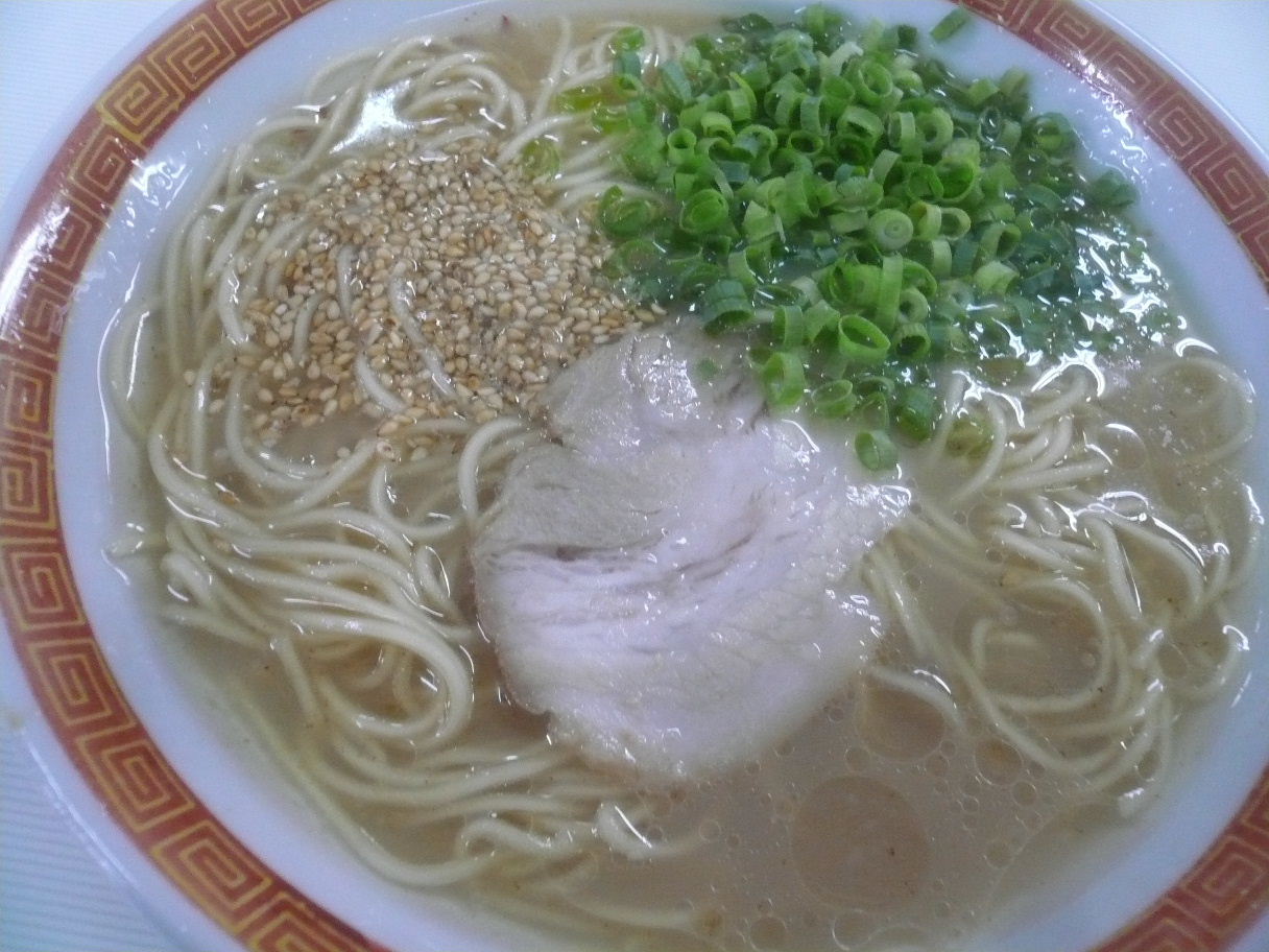 福岡市西区千里426-1 092-806-1976 珍しく海沿いのコースを走っていると見つけたラーメン屋さん。 ちょっと食べようかな? なんて思って立ち寄りました。 お店は駐車場が広いので車で行っても楽そうですね。 お店では、おっさんたちがビールとラーメンの具であるワンタンやチャーシューを食べていた。 なんだか楽な雰囲気でいいなぁ。 さて僕はノーマルのこちらをチョイス。 ラーメン550円。 シンプルな豚骨ラーメンでチャーシューが一枚、ゴマ、葱という具材。 スープはかなり脂が浮いていてなかなかディープですな。 そのスープですがかなりシャバシャバしたタイプなのですが。 しっかりニンニクが効いているし脂も強いので上手にカバーをしているね。 なかなかジャンクな味わいも残っているけど、これはこれでいいなぁ。 昔風の豚骨ラーメンってきっとこうだったんだろうなぁ。 チャーシューはちょっと薄めでちょっと寂しいし、具材がシンプルだけに福岡のラーメンの中では高く感じるね。 でもこういった味って意外と無くなってきてるから貴重かも。 次はワンタン麺を食べたいな。 結構頼んでる人が多かったしね。 ご馳走様でした。