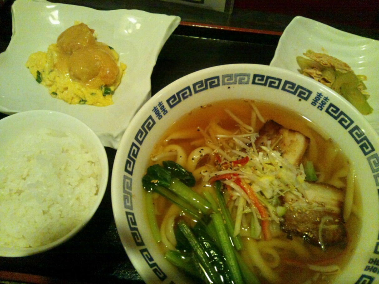 福岡市西区内浜2-14-4 092-516-1384 今日は偶然ランニング中に見つけたお店へ。 って多分普通の人では見つけられないよね、こんな所にあるお店は。 って言える場所にあるね。 大きな道から一本外れて、住宅がある小道にぽつりとある。 入ると小さなカウンターとテーブルが2つ。 もしかしたら2階も席があるのかな? メニューを見るとお弁当系がメインで持ち帰りが多いようだ。 もちろん、店内でも食べれる。 僕はこちらでお薦めと言われた日替わりを頼むことに。 とてもお得ですよ、と中国語なまりで教えてもらえました。 日替わり定食680円。 今日は、軟骨湯面・半チャーハン・ザーサイとメンマのラー油和え、春雨の和え物。 ちょっと器がチープで軽いのがなんともなんとも(笑)。 いや、中国料理屋さんっぽいと言うべきかな(失礼)。 ラーメンのスープをすすると、あれれっ? ちょっと香草のような香りがする。 ちょっと薬っぽいと言うか独得の香りで面白いな。 そして軟骨を食べると、あ~そうか。 この肉から香草の匂いがするんだ。 肉は軟らかく煮られていて、ゼラチンがしっかりと効いている。 そこに独特の香りで煮られていて万人受けするかは不明だけど美味しい。 もやしとレタスが入ってシャキシャキした食感もいいね。 スープはあっさり醤油ラーメンで、食べやすい。 具が目立つのでこれくらいでちょうどいいね。 麺はやや細め。 チャーハンはさらしとしていてジャンクじゃないタイプ。 これはこれで旨いチャーハンですね。 椎茸が沢山入っているので僕好みの味になってたな←椎茸好き。 小鉢はちょっとした食感があったりして、この値段では充分ではないか? ちょっと調理に時間がかかったり(15分ちょっと待ったかな?)、皆さん中国の方でちょっと片言だったり。 日本っぽくなくて僕は楽しかったな。 また次は定食か。 夜に軽くおかずとビールもいいかも。 ご馳走様でした!