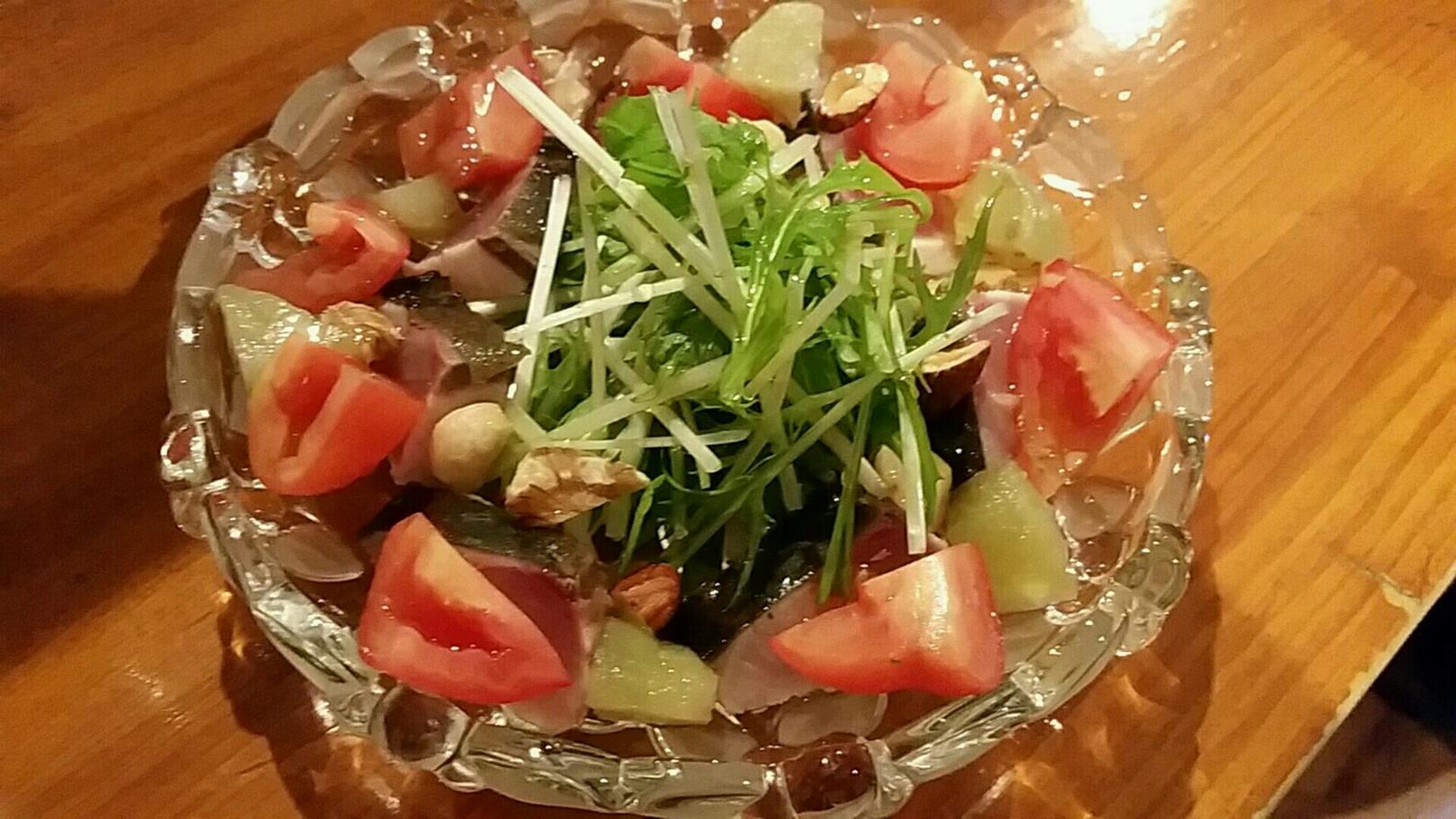 092-834-3120 夏場かな、少しお店が変わっている気がしたお店。 和食のお店だとは思っていたのですが、メニューもよくわからなかったのでパスをさせてもらっていた。 この日前を通るとメニューも看板的にあったし、なかなかよさそうだったので入ってみた。 お店は座敷がメインですがカウンターもあります。 メニューにはないのですがテーブルには生ハムがあり、メニューを見るとお酒はワインがメイン。 洋風のものを加えながらの和食を出して言うのかな。 僕はビールと日本酒で行かさせてもらったけど。 ビールはとれたてホップを出してもらっていた。 日本酒はあまり呑まないからわからないと言っていたけど、なかなか良い揃えだった。 つきだしは白身魚の南蛮漬け。 ほろっと崩れるような魚に甘めの酢漬け。 前日の魚を使ってくれているのかな? 最初のタッチとしては悪くないね。 ホタテのチャンジャ。 ホタテのひもを使ったチャンジャ。 少しキムチ的な熟成感を考えていたけど、かなりストレートな辛さがあるチャンジャだった。 唐辛子の直球さが出ていて面白かった。 ビールのつまみによかったなぁ。 刺身は鯖、鯵、カンパチ、イサキ、クジラだったかな。 どれも手当系ではなくストレートな刺身だった。 鯖は〆てあるのかな。 さらりとしていたのが面白い。 クジラは酢味噌で。 少し甘めというか甘みを使うのが上手なお店ですねぇ。 少し変化球でゴーヤチャンプルを。 豚の生姜焼きと悩んだけど、こちらをチョイス。 よく炒まったタイプで鉄板で出される。 味がしっかりしていてお酒に合いますね。 ちょっとお酒が進みすぎて駄目だなぁ(苦笑)。 なかなかいいお店だなぁ。 ここを少し攻めてみたいな。 人気店になってほしいなぁ。 ご馳走様でした!