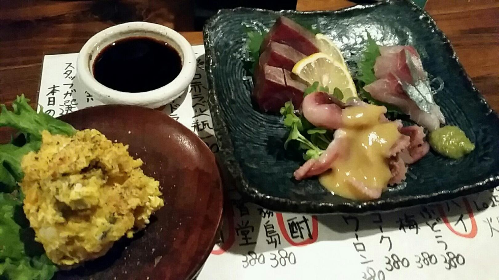 広島市中区堺町2-6-20 082-292-1602 久々の気がしなかったのだけど、よく見たら2年ぶりになるんですね。 確かに昨年の年末に広島に行ったときは。 何故かこちらが開いてなかったんだよなぁ。 まぁ年末の営業を調べていない僕が悪いんだけど(苦笑)。 ってことで久々のこちらへ。 夜遅くだけどホテル近くにあるので思わず立ち寄ってしまう。 ここは串揚げメインで昔はドテ鍋などをあてに食べていたなぁ。 前回行ったときはかなりメニューは変わっていたのだけど。 またちょっとクオリティが上がった居酒屋さんみたいになった気がする。 かぼちゃとサツマイモのポテサラと刺身3種盛。 どれもかなり安かったと思う。 刺身も安かったけど、一品ものも380円くらいで大体揃う。 ポテトサラダはかなり甘くてびっくりしたけど、美味しいものだ。 これはシーズンということかな、なんて思いながら(かぼちゃのあの祭り)食べていた。 日本酒に合うかと言われれば、秋田の料理を思い出したら全然いける。 甘いものとお酒は僕は大丈夫のようだ。 刺身は、カンパチ、鯵、イイダコ。 イイダコが出てくるなんて嬉しいね。 意外とクオリティもしっかりしていて美味かった。 ありがたいなぁ。 ホルモンの天ぷら。 これも広島でしか食べれないよね。 これは文化としか言えないホルモン系の天ぷらが食べれるのが嬉しいな。 こちらはかなり脂もついているホルモンの部分を使っており、結構しっかりした味わい。 これはビールが飲みたくなるなぁ。 少し重くなる感じがするけど、そこんはレモンをかけたり。 少し辛いたれをつけたりで切り口も変えれる。 やっぱりいいお店だなぁ。 立ち呑みのクオリティが高いのが嬉しいな。 また行きたくなりました。 ご馳走様でした!