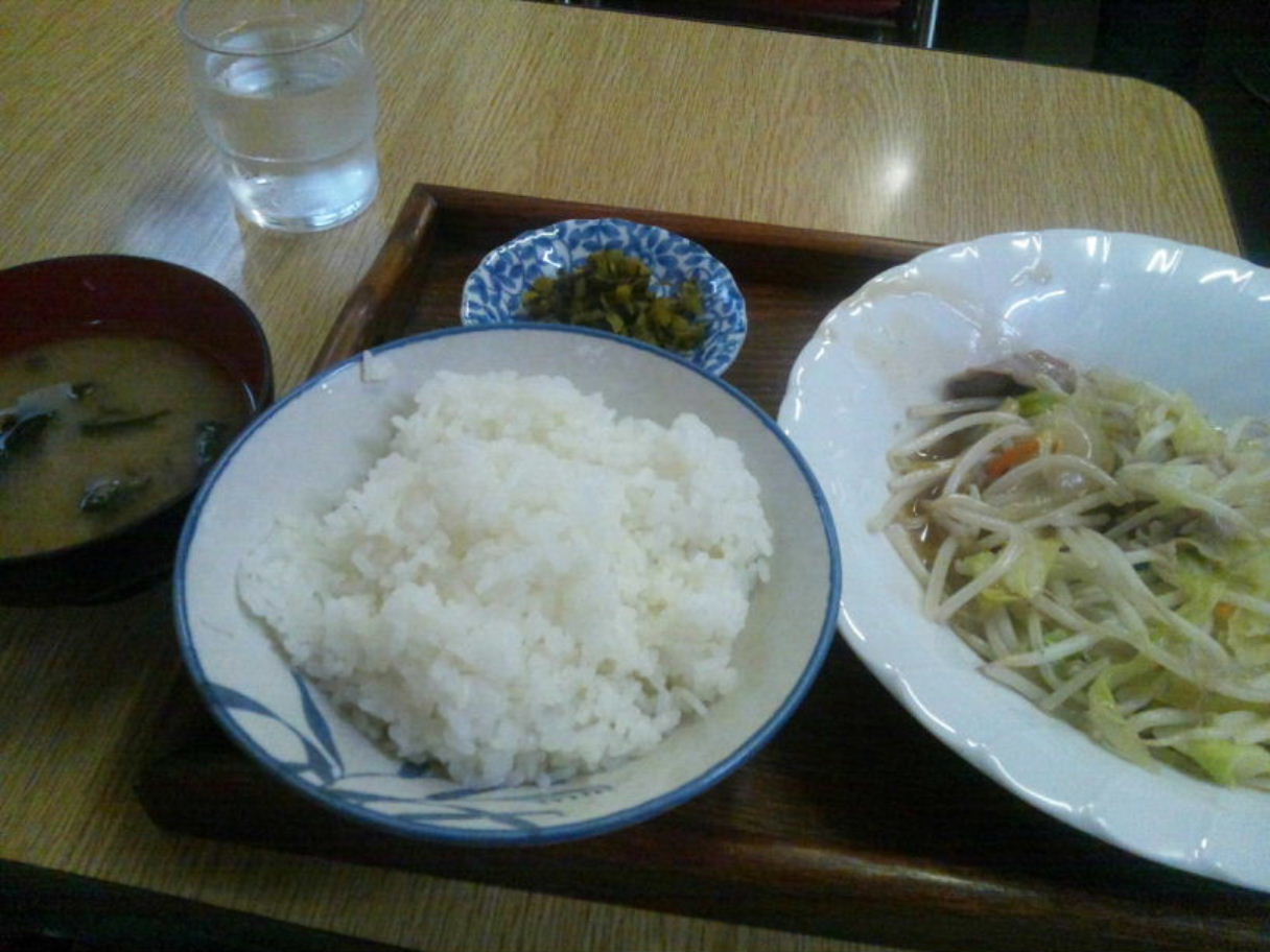 福岡市博多区上呉服町10-25 092-291-1282 今日は弁当も食べ尽くしたので、外食ランチ。 こちらは「みやけうどん」さんのすぐ近くにあるお店。 扉は開きっぱなしで入りやすいし、もうおっちゃん達がお酒を呑んで中華料理を食べている。 そんな雰囲気で食べれるお店ですので、ランチも安い! ラーメンは450円。 高菜チャーハンとか気になるお店もあるね。 さて僕はこちらをチョイス。 野菜炒め定食500円。 たっぷりご飯にたっぷりのもやし入りの野菜炒め。 高菜に味噌汁。 野菜炒めはちょっと塩味が強い目の味付けでご飯が進む。 もやしがシャキシャキで美味しいね。 しかしたっぷりの盛りでお腹一杯になれるなぁ。 ご飯もしっかりした盛りで野菜炒めで食べて、高菜で食べて、若布の味噌汁で食べて。 最後に野菜炒めの汁で食べてました(笑)。 最後に汁で食べてるとお店の奥さんが笑ってスプーンを出してくれる。 他にもラーメンを食べる人には元気良く「熱いよ!」って言ってたしなんだかアットホーム。 雰囲気も素晴らしいんだよね。 また行きたいな。 次は高菜チャーハンだ! ご馳走様でした!