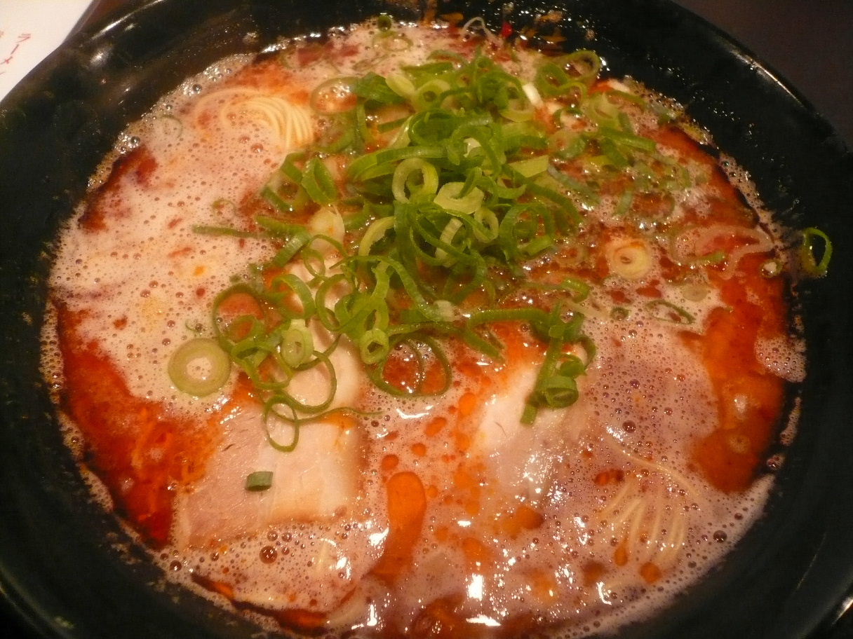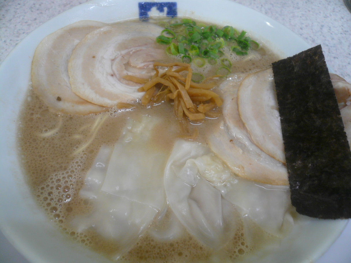 福岡市博多区東那珂2-4-31 092-483-4800 今日はひょっこりと立ち寄ったお店へ。 そうかぁ、テレビでやっていた「ドトンコツラーメン」ってここか! なんて思って興味を持ち。 せっかくなんで行ってみました。 入ると、思ったより豚骨臭は店内にはないですね。 元気なかけ声が気持ちいい店内。 メニューを見て分からないことを効いてみてもハキハキと教えてもらえる。 こういったところはさすが有名店、安心感がありますよね。 さて僕はお薦めされたこちらをチョイス。 魁龍ラーメン790円。 チャーシューが4枚、ワンタンが2枚入った具だくさんラーメン。 豚骨はぽってりとした濃厚さがありますね。 飲んでみようと口に入れると独特の豚骨臭というか獣臭が口の中に漂う。 これはきついな、なんて思いながら食べてみる。 濃厚でなんだか骨の髄をそのまま食べているかのような味わいでかなりきつめ。 僕はあまりココまで濃厚系は食べた経験がないからビックリ。 そしてココまで強く出汁を取っているのに甘みがあまり強くないが凄いね。 これは店の力なのか、面白いスープですね。 麺はパキパキした細麺で向こうから硬さは聞かれなかった。 でもこれくらいがこの濃厚スープに合うのかな? チャーシューも意外と脂がしっかりついていて柔らかいタイプ。 ワンタンは熱くてふにゅふにゅした食感がたまりませんな。 面白いラーメンでした。 身体から豚骨の匂いが沸いてきそうなスープでしたな(笑)。 また経験したいな。 ご馳走様でした。
