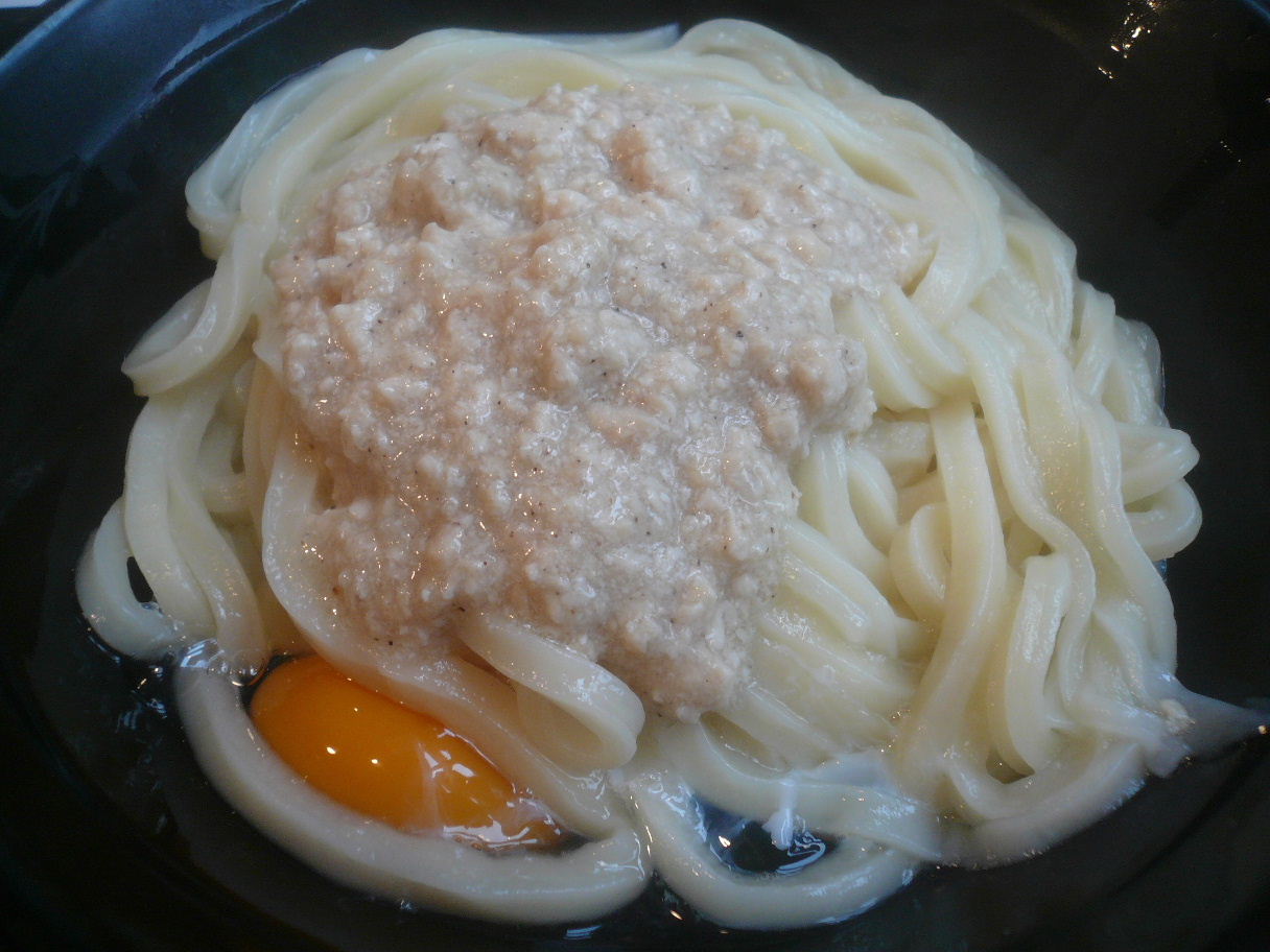 福岡市中央区渡辺通4-11-3 092-732-0537 今日のランチはこちらへ。 久々に前を通ると美味そうなメニューが書いてあったので。 入ると昼過ぎなのにお客さんが多い。 相変わらず人気ですねぇ。 さて今回の注文もいつも通り少し待ちます。 まぁ美味しいうどんを食べるためなら少しくらいは待たせてもらいますよ♪ 鶏釜玉うどん(大)520円。 綺麗な鶏そぼろ餡ですね。 そのままお食べください、ってことで混ぜ混ぜして醤油もかけずに食べる。 うん、塩餡になっていてこれは旨いね。 鶏の香りがしっかり残っていて卵との組み合わせもいいです。 途中でちょっと生姜を加えたけど充分これでバランスがいいので、蛇足になった気もする。 でも美味しいうどんだなぁ。 しっかりしたうどんの腰は福岡でも人気があるんだね。 美味しいうどんでした。 次は冬に温かい出汁で食べたいなぁ。 ご馳走様でした!