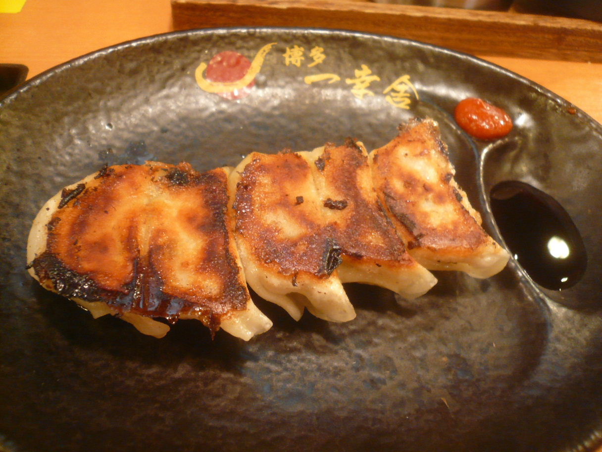 福岡市中央区大名1-8-4 092-751-8352 今日は紹介してもらったお店第4弾。 やはり福岡Walker掲載店でした(笑)。 以前、大濠公園のお店には2度くらい行ってるけど、こちらが本店のようだ。 お店にはIHファンがあっていつでも温められるようだ。 これはつけ麺の冷やした麺で汁を冷まさないのでありがたいね。 さて今回はちょっとお腹が空いていたのでこういったものを注文。 ちなみにこちらも食券制となっている。 一口餃子250円。 ほんとに小さな餃子が5個セットになっている。 かりかりのしっかり焼かれた餃子で餡はちょっと少なめ。 ジャンクさがあまり強くないけど、赤い胡椒をつけるとなんだか更に食欲が増す。 もう少しボリュームが欲しいな。 これなら8個入りを頼めば良かった。 次はそうしよう! 鶏つけ麺750円。 鶏のしっかりした色合いが綺麗なつけ汁ですね。 麺は200g。 つけ麺にして食べてみると軽く冷やされた麺に保温できている汁で食べるとやはりなかなか旨いね。 汁は鶏ガラに鶏皮とかとか使っているのだろうか? ちょっと鶏の脂の臭みすら出ているくらいしっかりとした出汁だね。 もしかしてホントに皮とかの部分も使っているのかな? そこに魚介の香りもついてくる。 面白いですね。 麺は意外と太くはない。 つけ麺は太い方が合う気もするけど、これも個性なのかな? 最後に雑炊も出来るらしいのですが、もう既に1,000円使っているのでやめておいて出汁割りに。 これを足すと思った以上にスッキリとする。 臭みが抑えられて穏やかなスープになっていた。 これは面白いね。 やはり面白いお店でした。 次は豚骨のつけ麺を食べてみたいな。 どんなつけ麺かなぁ? ご馳走様でした!