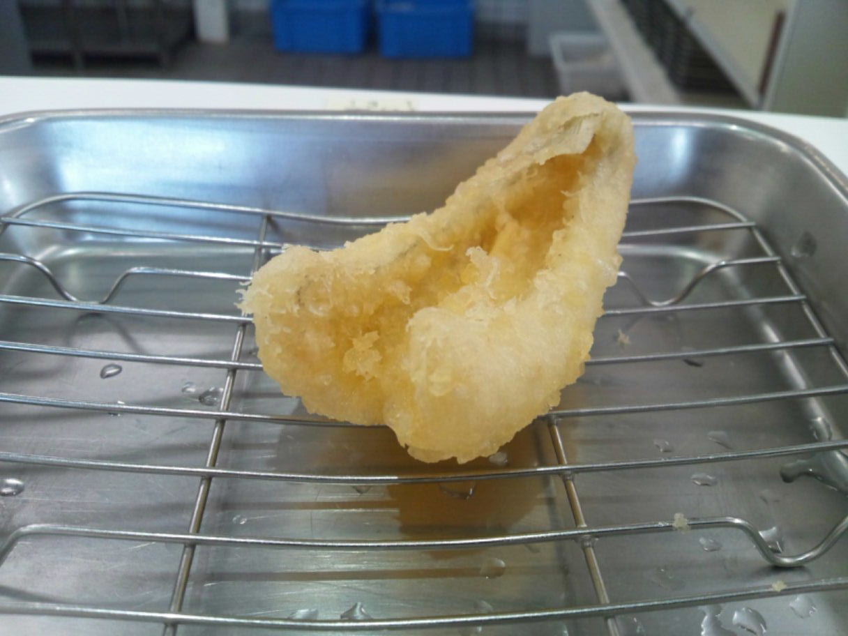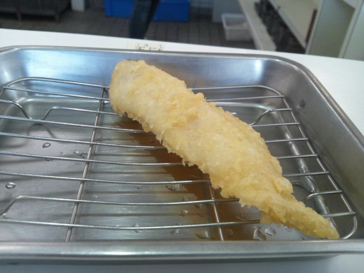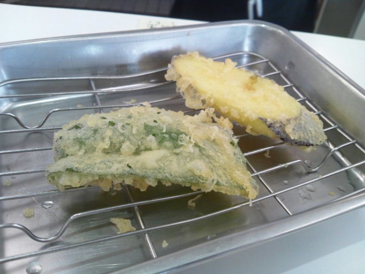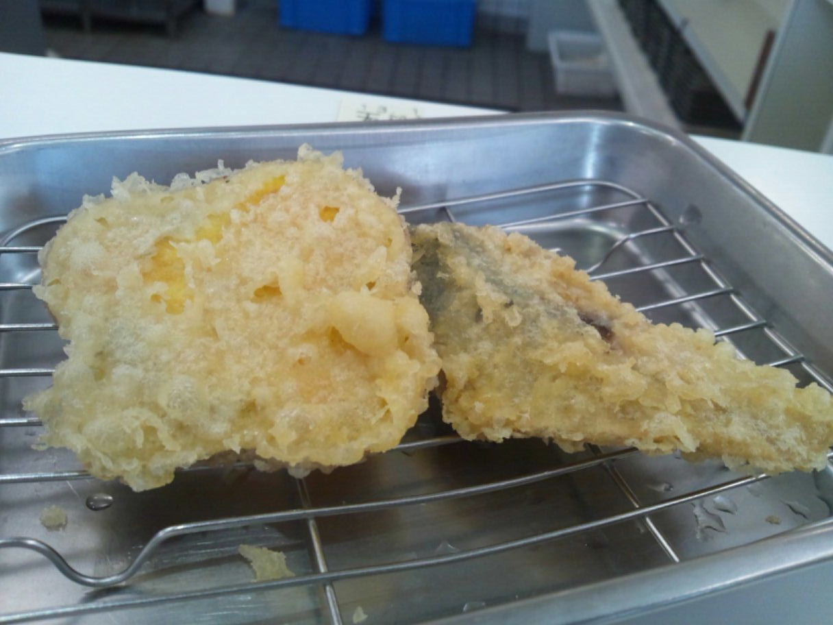 糟屋郡久山町大字久原3174-1 092-976-2686 今日は、ちょっと仕事で糟屋郡久山まで来た。 せっかくなので何処で食べようかとウロウロしていて見つけたお店。 パチンコ屋さんの隣にあり、天麩羅をメインにしていた。 きっと天丼もあるだろうと思い入ってみました。 お店は入るとすぐ手前に券売機がある。 メニューを見ると単品の天麩羅もあるけど基本全て定食となっていた。 入ると、店内はかなり長く広い感じのお店。 店員さんも多く、さてどうしようかと思っているとそのうちの一人が。 「左に並んでください」 と言われた。 よく見ると全てカウンターなのだけどカウンターの後ろに行列用の椅子がずっと並んでいる。 お店には30~40人くらい座れるカウンターだけど、20人近く並んでいた。 凄いな。 僕はとりあえず30分くらい待って座れた。 さて定食と行きましょうか。 まずは定食を頼んだ人からご飯、味噌汁、天つゆが出てくる。 天つゆは結構濃いですね。 そして小鉢で自由におかずも取れる。 おかずは写真に撮れなかったが僕は、大根の煮付け・イカの肝和え・もやしの酢の物を食べた。 イカの肝和えの塩分が強くなく、しっかり甘めに作られているのが楽しかった。 柚子も効いているしご飯に良く合う。 なかなか嬉しいね。 天ぷら定食670円。 天麩羅はカウンターでどんどん揚げられて色んな人に配られていく。 まずは白身魚らしい。 これは・・・、鱈? 身離れが良いし食べやすい魚だね。 そして何より揚げたてなのが良いね。 油臭さも感じられないのは技術の高さだろうね。 キス。 こちらも身離れが良くて美味しい天麩羅。 ホロホロとして癖もなく美味しいね。 ちなみに天つゆはちょっと味わいが濃くて大根おろしたっぷりで食べると旨いね。 安納芋・鯖。 安納芋はホクホクしていて水分は少ない。 甘みがあってサツマイモの天麩羅は旨いなぁ。 鯖はしっとり。 青魚らしい独特の風味があって良いね。 こちらはカレー塩で食べたけどこれもご飯にも合うね。 ピーマンとなすび。 どちらもカリッとした表面で美味しい野菜を食べれる。 これは幸せになれますね。 茄子も甘い。 ちょっと油が強いけど旨いねぇ。 最後に写真はついて無いけどイカが来た。 イカは・・・、上手く噛みきれなかった(苦笑)。 でもこれだけの天麩羅がどんどん出てきて揚げたて。 確かに人気なのも納得。 ご飯もたっぷりだったしね。 次は、お好み天麩羅ってのもあったのでそちらにしてみようかな? ご馳走様でした。