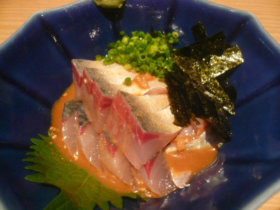 福岡市中央区今泉1-18-28 092-721-4711 今日3軒目のお店はこちら。 ほんとは広島の皆様にも来て欲しかったのですが、流石に随分呑んでたもんね。 ってことで一人でいつも通り訪問。 すみませんねぇ・・・。 ってことでひょっこりと。 いつも通りお酒の飲み比べを頂きながら料理を。 今回はつきだしとこちらだけ。 ゴマ鯖。 多分600円くらい。 たっぷり(笑)。 鯖は身質がいいですね。 『二○加屋 長介』 さんはしっかりした身質で、濃い味わいなのでゴマに負けないタイプですが。 こちらは臭みもなく、少し柔らかいタイプ。 ゴマに綺麗に交わった感じ。 この鯖で酒を流すのは最高ですね♪ 美味しい鯖でした。 ゴマアレルギーなのでタレはあまり絡めずに食べましたが、もったいなかったなぁ。 次はもう少しゆっくり食べますよ。 ご馳走様でした! PR