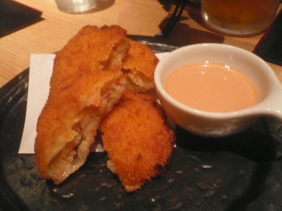 福岡市中央区舞鶴1-3-14 092-722-0600 今日はまた住吉酒販さんのイベント見つけてやってきました。 こちらはちょこちょこ通勤時に見ていたお店。 お洒落なお店だなぁ、って思っていた。 こういった機会にお店に行ける、これもイベントの良さですよね。 さてこちらのお店は普段は椅子もあるらしいですけど今回は立ち呑みスタイル。 普段は20人ちょっとくらい座れそうな意外と広そうなお店。 メインは地ビールとタパス。 ちょっとつまむのに良いお店かもね。 さてこの日は、こんな料理もありました。 ポテトサラダおたふくソースかけ200円、クリームチーズの味噌漬け100円。 こちらは「さぬいろ」さんのメニュー。 この日は「さぬいろ」さんも出店してました。 ポテトサラダはマヨネーズもしっかり効かせたノーマルのタイプに甘いおたふくソース。 広島にいるときにはたまにおじさんが食べてたよなぁ。 なんて思って食べてました。 まぁ間違いのない味でした。 チーズの味噌漬けは鉄板ですよね。 でもこれも意外と濃いビールに良く合いますね。 モツ煮カレー300円。 ライス付きで500円だったのですが、ライスはパス。 思った以上にスパイシーと言うか辛いカレーだった。 モツは臭みもなく、あまり脂の強さも無い煮込みカレーだった。 ちなみにこちらの料理も「さぬいろ」さんの料理でした。 ヴァイスヴルスト500円。 実は食べたことの無かった白いソーセージ。 フワフワした食感がソーセージっぽくないね。 とても丁寧に練られた様な食感は癖になりそうだった。 また酸味の効いたマスタードが良く合う。 美味しいマスタードとソーセージは鉄板の美味さだね。 あと塩分の効いたサラダも面白かったし。 これはまた食べたいな。 ハギス&マッシュポテト500円。 羊肉や腎臓・オーツ麦・ハーブ・スパイスで煮込んだスコットランド料理らしい。 スパイスもしっかり効いていて香りも独特。 ちょっと味わったことのない味付けで面白い。 ちょっと濃いめに味付けをマッシュポテトが良くあって旨い。 そして何より。 濃いビールに良く合うのが良いね! ここはとても良いお店ですね。 イベントだけでなく普通に行きたいな。 ビールはあまり呑まないのでちょっと厳しいかも知れないけど。 きっと料理でも楽しめそうだ。 ご馳走様でした!