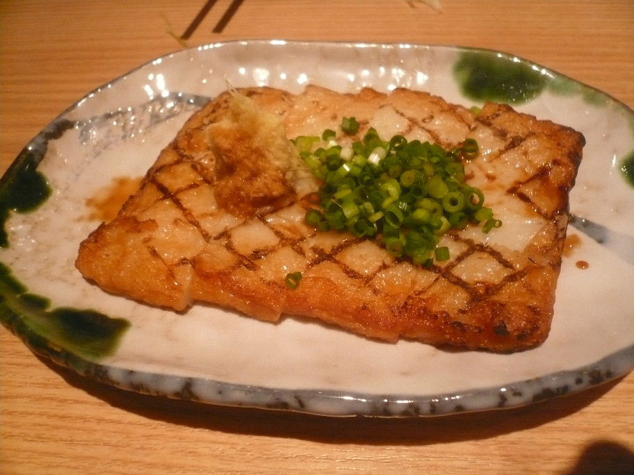 福岡市中央区薬院3-7-1 092-526-6500 この日は広島時代の友達達が来てくれていた。 こういった場合、福岡にいる僕がこのお店を紹介! なんて展開なのですが、何故か僕はついていく感じ(笑)。 こちらは以前から気になっていたお店。 うどん居酒屋というカテゴリーを大きくしたお店。 行きたかったのですが、こちらのお店はやはり多人数で行くべきお店だと思ってたので。 さて今回は沢山食べました。 こんな感じですよ~! ゴマ鯖。 ゴマアレルギーですが、やはり食べたくて(痒くなるので)。 しかしこちらの鯖は旨いですねぇ。 鯖自身が臭みが無く、しっかりと旨味がある。 これだけ旨い鯖だと濃いゴマに負けないね。 こりゃ素晴らしい! ちょっとした和食料理店が逃げ出しそうな美味さだった(笑)。 長介サラダ。 なんじゃこりゃ(笑)。 山盛りのキャベツが凄いですね。 ドレッシングというかちょっとスパイシーで香りの良いものが降りかかっている。 それが上手く食欲を増してくれる美味さがある。 底の方には酸味の効いたドレッシングがある。 味が途中で変わって良いですね。 大盛りだけど、大盛りの美味さを味わった感じだったなぁ。 海老カツ。 海老がぷりっぷり。 身が強く食感がいいですね。 居酒屋メニューとしてもとても良いと思いました。 また食べたい(笑)。 ツボ鯛味噌漬け。 照りが綺麗ですね。 脂が強くホロホロとした食感でこちらがやはり福岡らしい魚らしい。 なかなか今までは食べれなかったもんね。 こちらは味わいや甘さが濃いので強いお酒に良く合いますね。 ちく店。 ちくわの天麩羅。 海苔の香りが美味いですね。 カリカリとした表面で食べれるのが嬉しい。 やはりうどん屋さんの定番ですよね(笑)。 ホルモン煮込み。 うどん出汁で煮込んでいるのがビックリ! 臭みとかを上手に取り除いているので上品に食べれる。 クニクニとした食感がたまりませんね。 汁まで飲めそうなホルモン煮込みというか綺麗なモツ煮込みは初めてでした。 角天。 平べったい天麩羅が香ばしく焼かれている。 ぷりぷりした食感の天麩羅が良いですね。 生姜たっぷり効かせて、醤油をかけるとこれだけで食べれますね。 鶏モツ煮込み。 照りが綺麗ですよね。 ちょっと鶏の癖を残しながら、生姜をたっぷりで食べるとこれが合う! 濃い味付けでたまらないなぁ。 こりゃ、ビールだな! って濃いめの日本酒で食べてました(オイオイ)。 鯖。 骨の周りが美味いね。 こりゃ、居酒屋メニューとしても良いけど。 やはり身が旨いからちょっと特別だ! 雲仙ハムカツ。 ぶっ、分厚っ(笑)。 しっかりした厚みがあって歯ごたえが素晴らしい。 ハムでしっかり脂身があってジャンクに仕上がっている。 これは流石に名物ですね。 こりゃ面白いメニューですな。 ひやひや。 もう、居酒屋さんだと思っている人も多いでしょうが、メインはうどん(笑)。 綺麗なうどんでしっかりしたもちっとした腰。 博多うどんではない、気持ちいい食感のうどんもいいですね。 汁は節系がしっかり効いていて美味しいね。 もう、ひやひやの時期としてはギリギリ終わりなので食べれて良かった。 美味しいお店でした。 値段は判らない仕組みになってましたが、これだけ食べてお酒もかなり呑んで一人4~5千円。 かなり安いと思った。 でもやはり一人よりも集団が楽しいお店だろうなぁ。 また行きたいな。 ご馳走様でした!